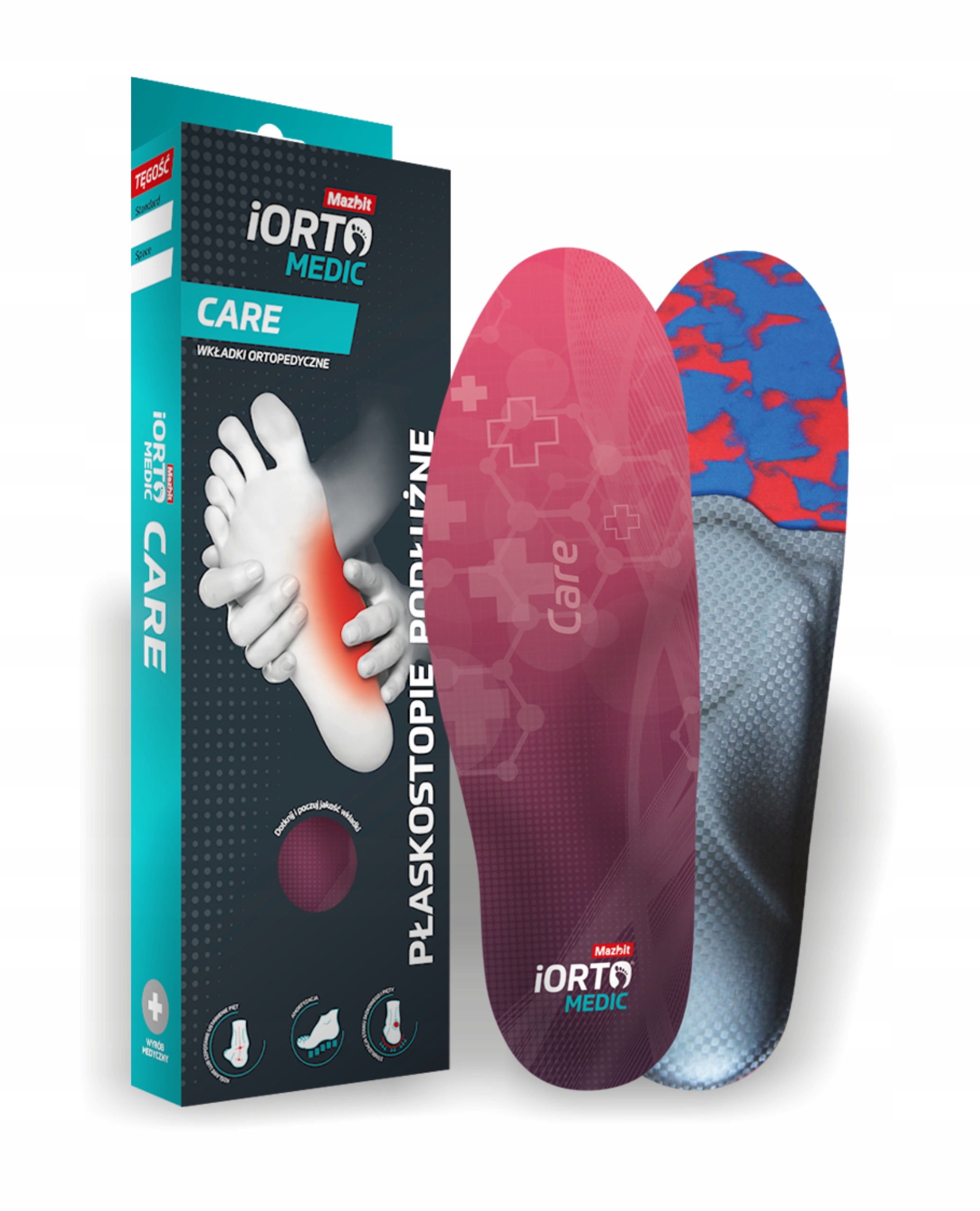 Сучасні динамічні ортопедичні устілки iORTO Medic Care Поздовжнє плоскостопість - це медичний продукт найвищої якості від польської компанії Mazbit. Устілки iORTO MEDIC Care призначені в першу чергу для людей з діагнозом поздовжня плоскостопість, вальгус або варус, а також для тих, хто потребує стабілізації. п’яткового та гомілковостопного суглобів (наприклад, після травми гомілковостопного суглоба). Завдяки своїй структурі, яка забезпечує динамічну підтримку поздовжнього склепіння стопи, він не тільки зменшує симптоми захворювання, але й усуває його причину.