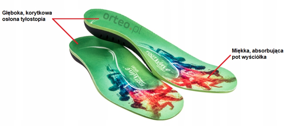 Устілки FootWave Sport завдяки своїй амортизаційній формулі забезпечують комфорт і безпеку під час фізичних навантажень. Вони підтримують підошовні склепіння та вирівнюють осі руху стопи та гомілковостопного суглоба, запобігаючи надмірному пронації (вальгусу), який є однією з основних причин травм. Ці вставки зменшують мікротравми, які виникають після тренування, завдяки кращій стабілізації суглобів, зв’язок і сухожиль. Правильне положення стопи також запобігає неконтрольованим рухам, які можуть спричинити травму, а посилена підошовна платформа контролює їх біомеханіку. Завдяки правильно підібраним вкладишам навіть найскладніші тренування перетворюються на задоволення.