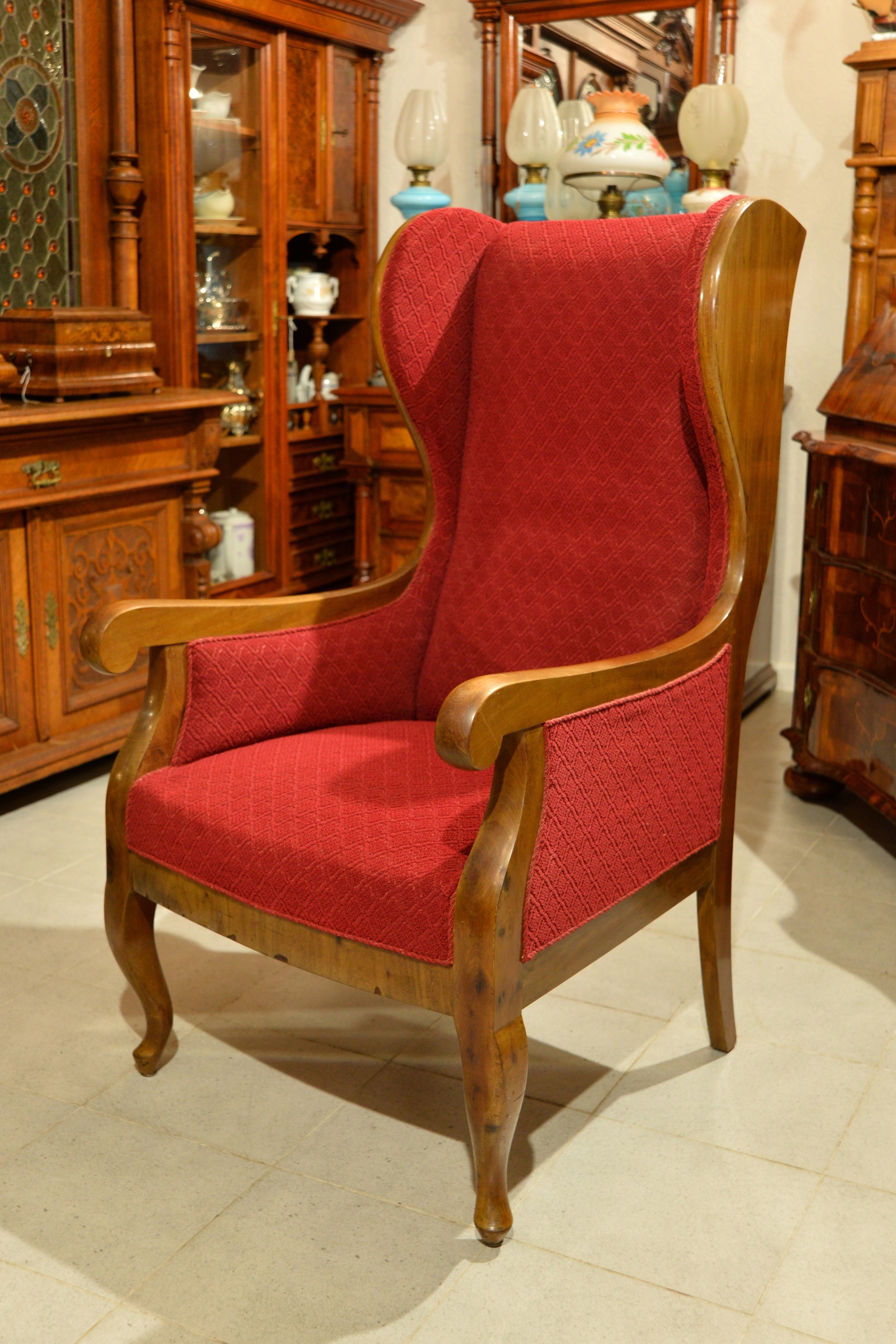 - має цікаву форму - злегка відкриваються «вушка» у верхній частині, красиво профільовані підлокітники, плавно зігнуті дерев'яні ніжки ...