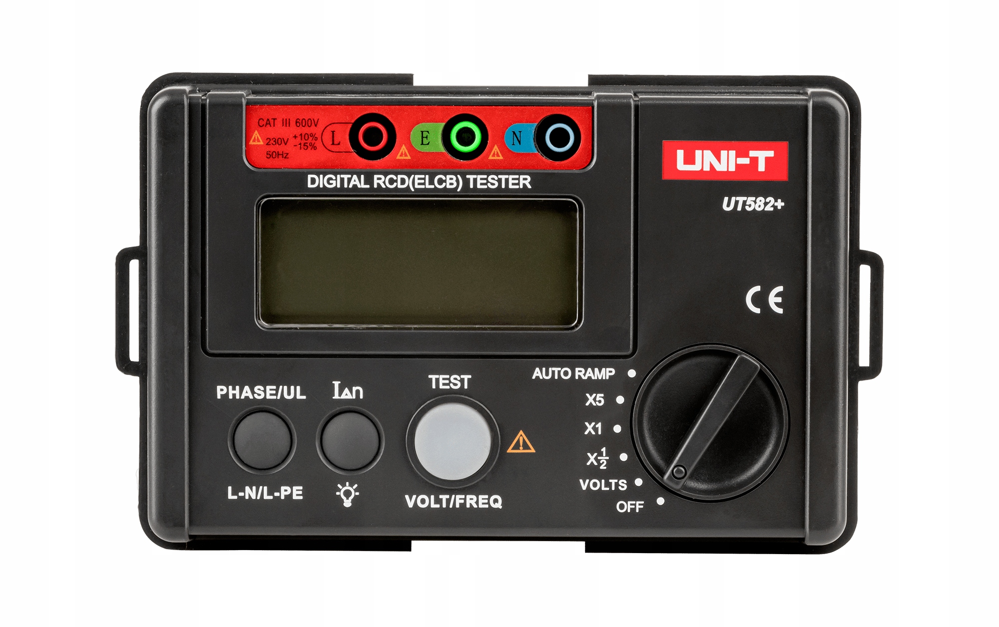 Цифровий тестер RCD залишкові вимикачі UNI-T UT582+ (ELCB) робить завдання тестування RCD дуже простим. Завдяки шести параметрам струму випуску, може бути перевірений ряд систем, що працюють на різних рівнях перемикання струму. RCD -тестер має Роздільну здатність часу 1 мс , що забезпечує дуже точні показання, придатні для професіоналів. Точність підтримується у всіх вимірювальних діапазонах; Максимальна помилка +/- 0,6% + 4 пропонується у всіх результатах, завдяки якому вона підходить для професійного використання. 4 У ситуації перевантаження на екрані OL з’явиться відповідне візуальне повідомлення. Три кнопки та обертовий перемикач - це все, що вам потрібно перевірити в системі. Широкий цифровий РК -дисплей забезпечує негайний відгук для користувача. Три вхідні роз'єми забезпечують швидкий спосіб підключення до електричних ланцюгів. Тестер UT582+ пропонується без сертифіката калібрування , який можна легко розробити в офісі заходів та ваг або компаній, що спеціалізуються на калібруванні та калібруванні вимірювальних інструментів.