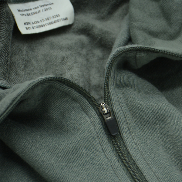 Оригінальна утеплена блуза з ресурсів голландської армії. Виріб виготовлено з товстого матеріалу, що складається з 80% бавовни/20% поліаміду. Манжети рукавів оброблені манжетами. Має високий комір-стійку на блискавці.