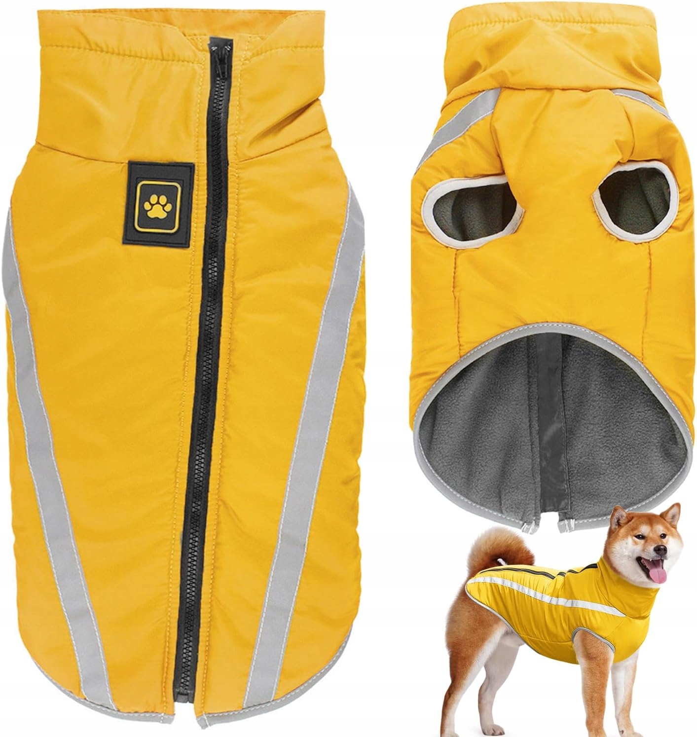 УТЕПЛЕНА КУРТКА ДЛЯ СОБАК, ВОДОСТІЙКИЙ, ВІТРОНЕПРОХОДНИЙ, ЖОВТИЙ ЗІ СВІТЛОВІБЛІКАЧАМИ 3XL