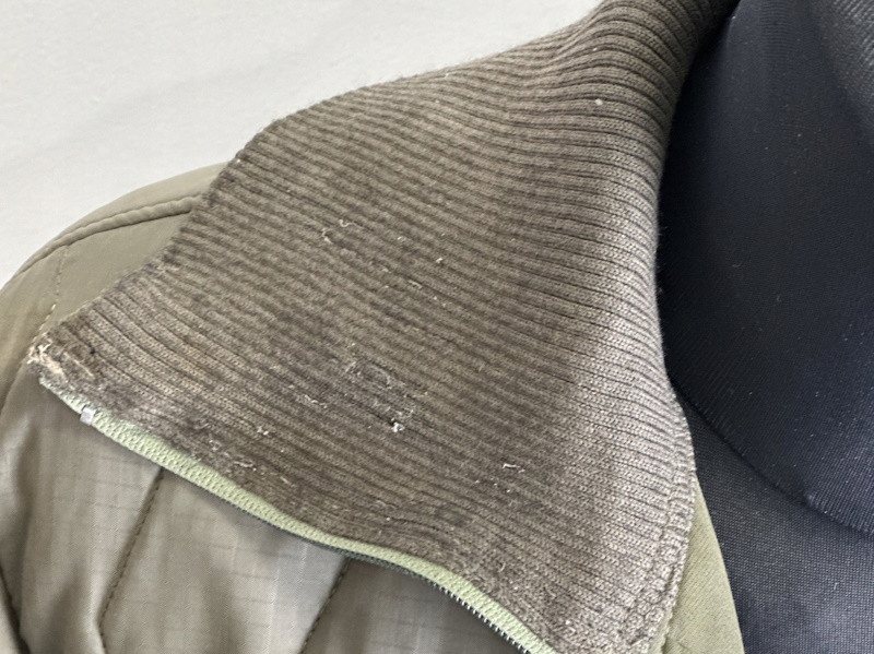 Б/В - стан хороший, блискавка заїдає при застібанні, комір заїдений, матеріал брудний на рівні плечей, підпис на передній кишені.