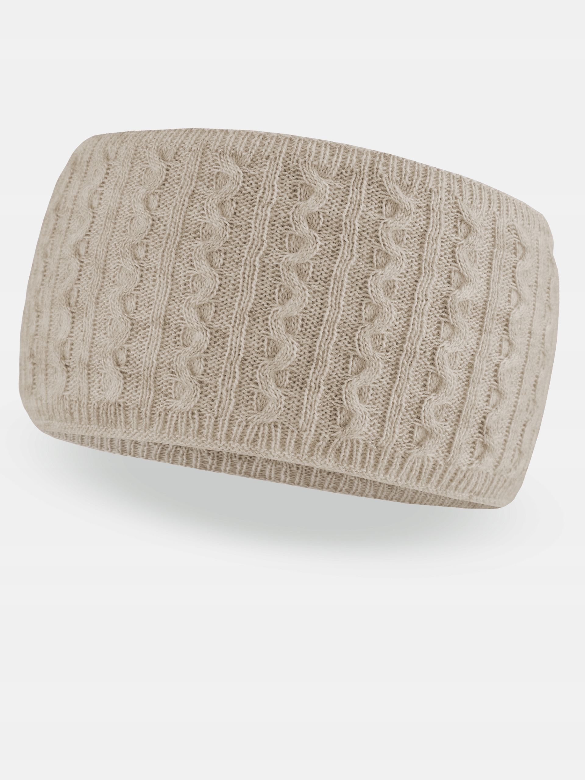 Утеплена пов'язка-вушанка з бежевим светровим переплетенням