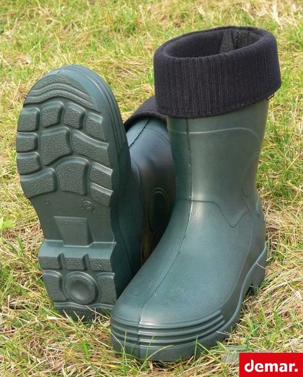 Farmer — ідеальний продукт для людей, які шукають Веллінгтони з EVA (тобто легкими) і довжиною до середини литок. Товар польського виробника Demar, який має багаторічний досвід у виробництві взуття, в тому числі веллінгтони з EVA. Вони чудово підійдуть для походів на рибалку, грибів чи на ферму, а також для простої прогулянки по калюжах.