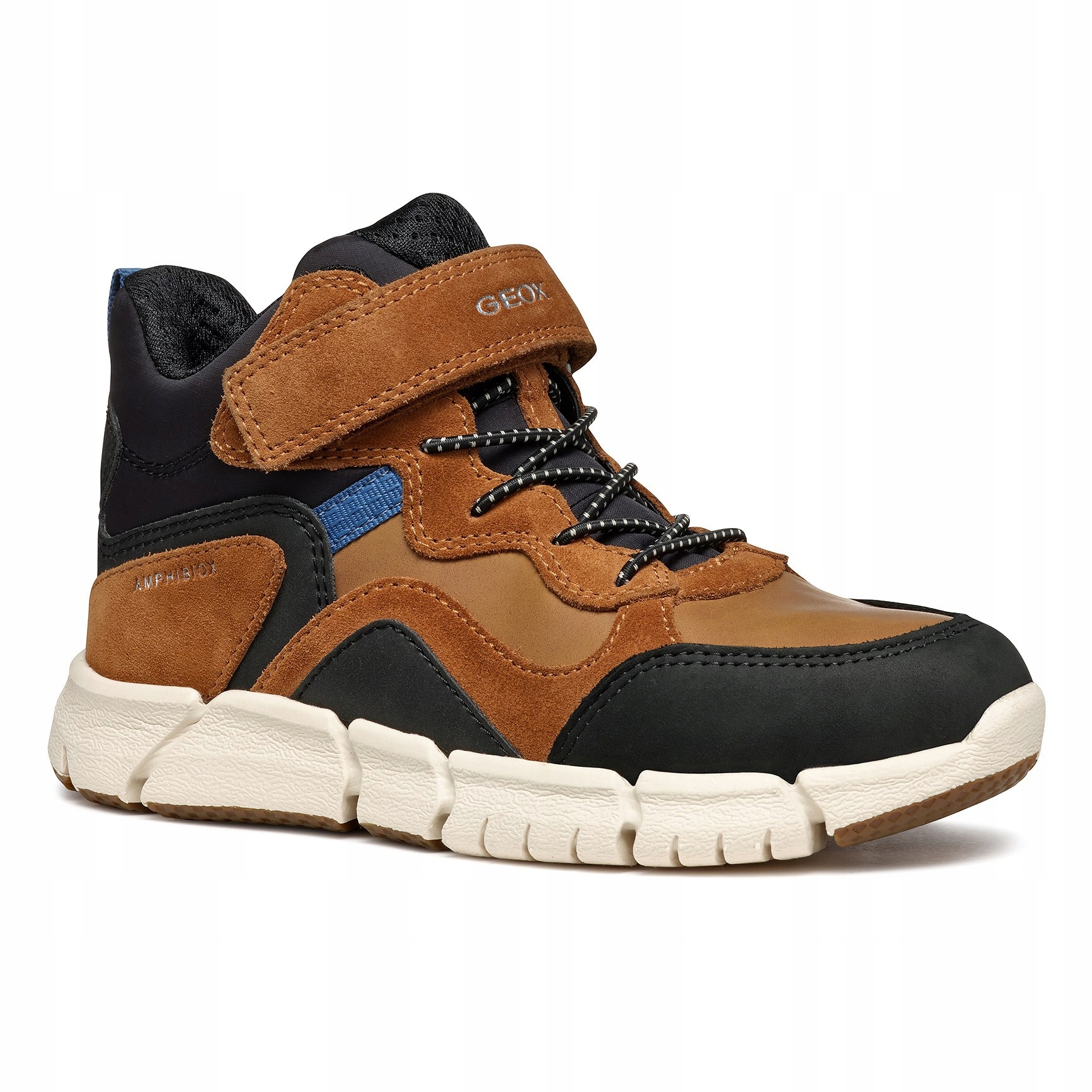 Amphibiox - технологія, яка використовується у взутті, не тільки забезпечує водонепроникність, захищаючи ваші ноги від дощу, але й снігу та бруду, а також додатково підвищує повітропроникність для забезпечення найкращої терморегуляції. Використовувані розчини зігріють вас у похолодання, а при більш високих температурах ваші ноги не перегріються. Запатентована технологія Geox Amphibiox гарантує оптимальну температуру протягом усього дня.