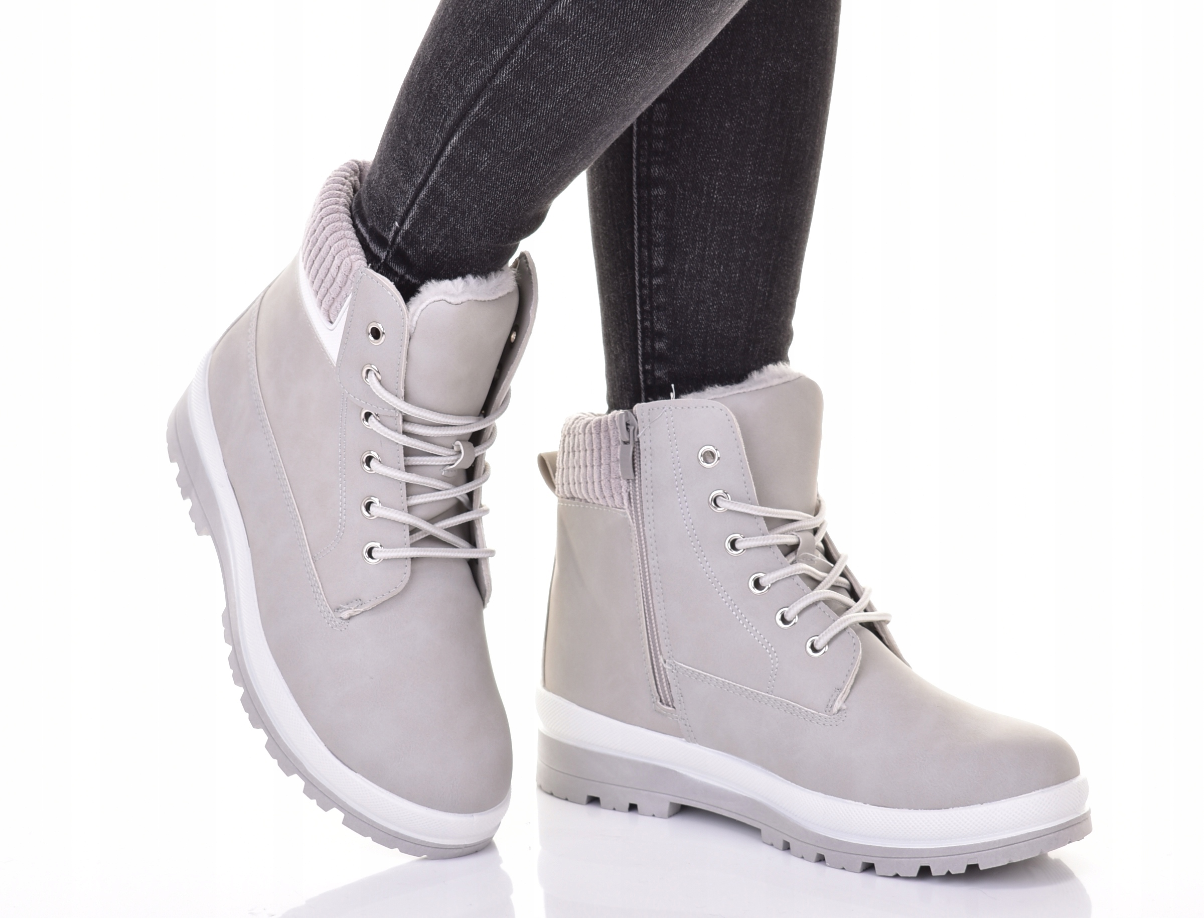 УТЕПЛЕНІ ЖІНОЧІ СНІЖНІ ЧОБОТИНКИ ЗИМОВІ ТРАПЕРС ВЗУТТЯ З ХУТРОМ СІРИЙ МОДНИЙ