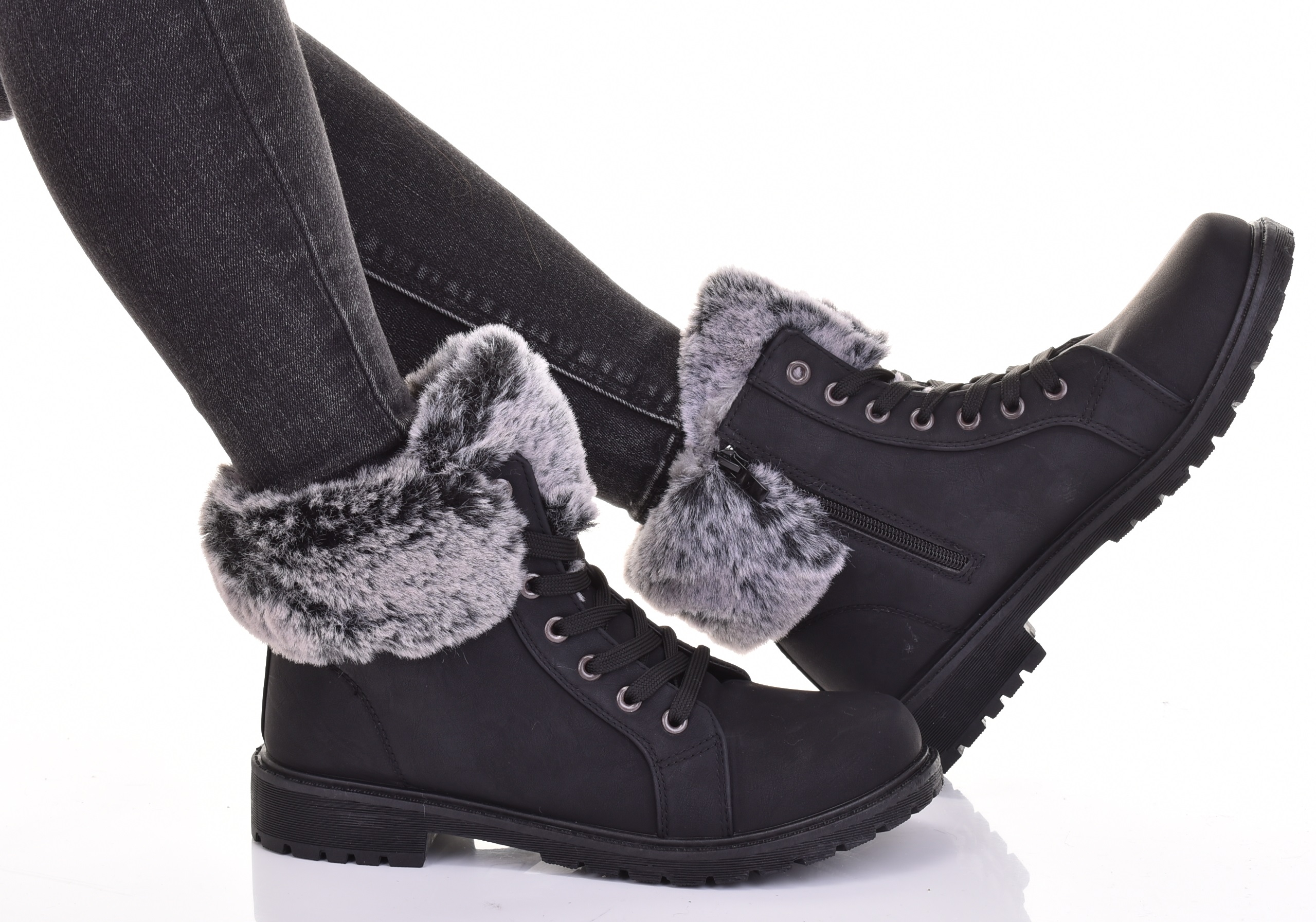 МОДНІ ЖІНОЧІ УТЕПЛЕНІ ЗИМОВІ ЧОБІТКИ TRAPERS SHOES З ХУТРОМ, ЧОРНІ
