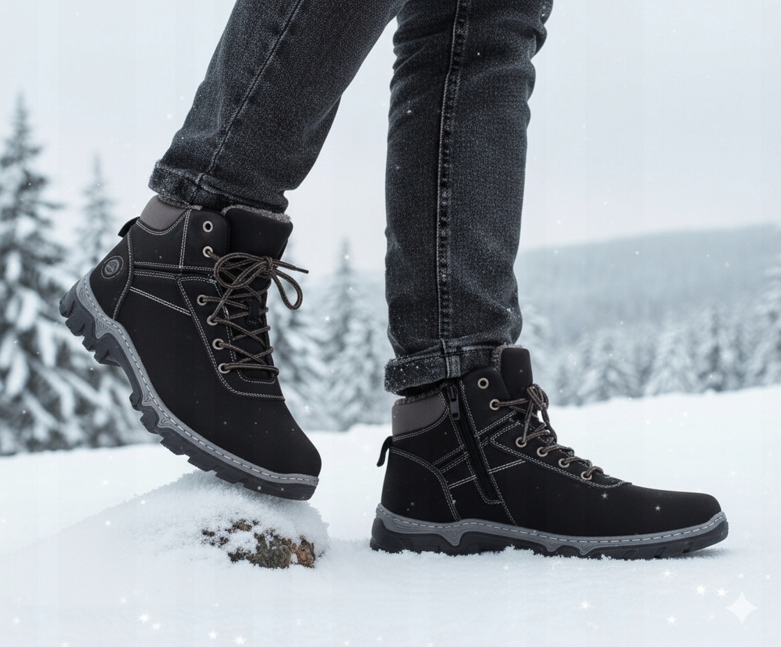 Чоловіче утеплене зимове взуття коричневого кольору з високоякісних матеріалів. Шнурівка і застібка-блискавка регулюють ширину взуття. Високий верх забезпечує стійкість. Підошва прошита і проклеєна, що забезпечує тривалий термін служби. Він повністю утеплений м'яким хутром, ідеально підходить для холодних днів. Протиковзаюча підошва з протектором покращує амортизацію стопи.