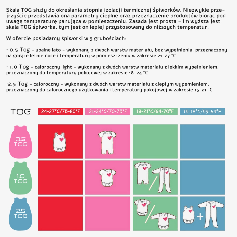 Одяг під спальним мішком повинен бути адаптований до переважаючої температури. У холодні дні бажано одягати дитину в повзунки з довгим рукавом.