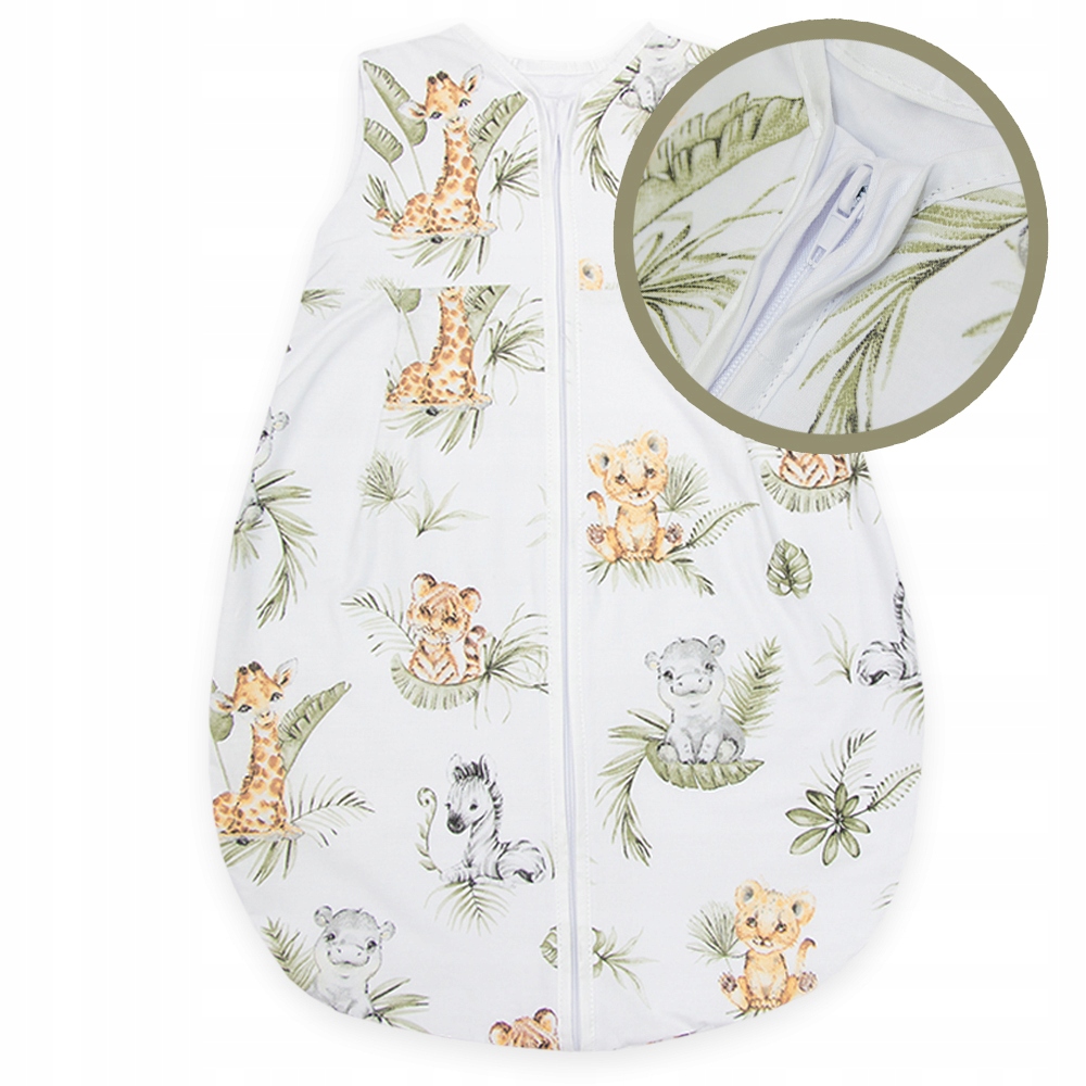 Зовнішня тканина та внутрішня підкладка виготовлені з високоякісної 100% бавовняної тканини. Зручний грушоподібний крій забезпечує свободу рухів дитини. Спальний мішок застібається на блискавку.
