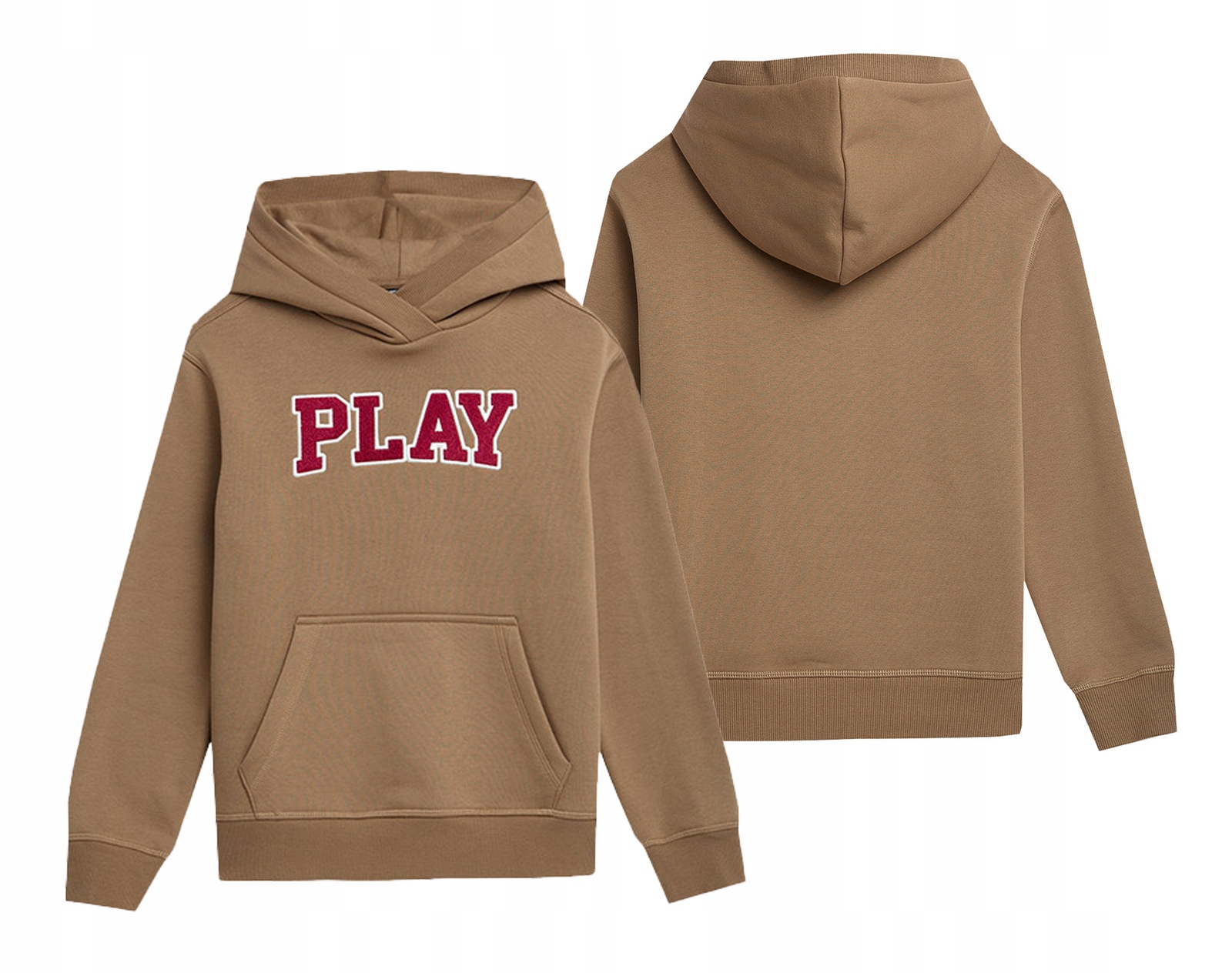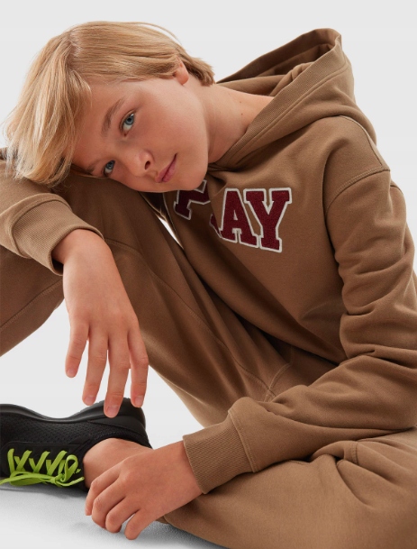 У комплект входить худі та спортивні штани. Комплект виготовлений з м'якого трикотажу з перевагою бавовни, підкладений пухом, що забезпечує оптимальне тепло. Ідеально підходить для перехідного періоду, він захистить вас від холоду по дорозі до школи, під час поїздок і активного відпочинку. Класичний звичайний крій світшота та штанів дозволяє вільно рухатися. Велика кишеня-кенгуру захистить руки від холоду і дозволить зберігати телефон, який любить мати під рукою кожен підліток. Вишитий бордовий напис PLAY підкреслить спортивний стиль і порушить однорідний коричневий колір.