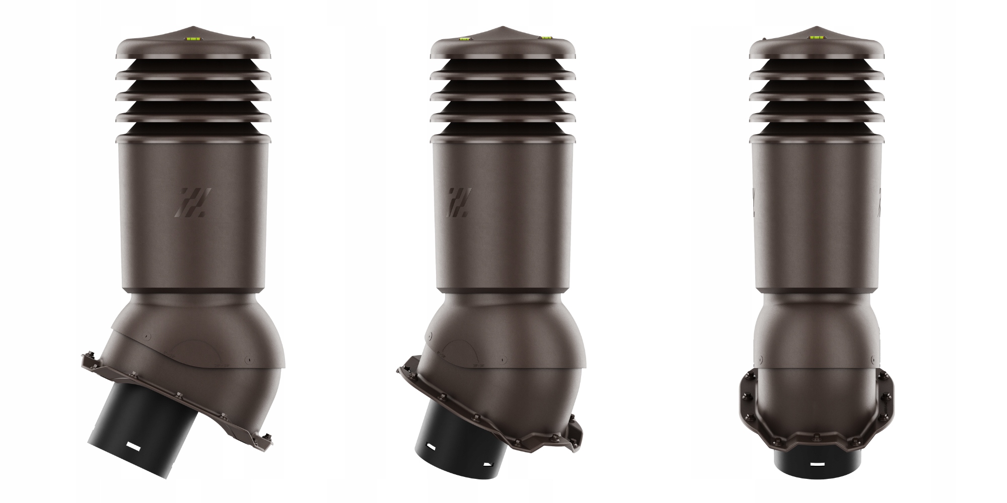 1️⃣ Рівні - сприяють точному та ергономічному вертикальному встановленню каміна. Можливе регулювання вентиляційної труби на даху в діапазоні від 5° до 45°.