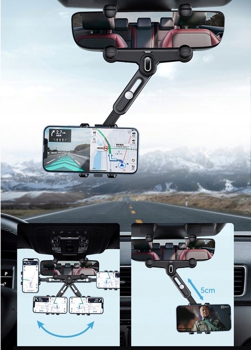 - Зручний, стійкий тримач для автомобільного дзеркала є безпечним рішенням для розміщення телефону на видному місці, яке не заважає користуванню автомобілем >