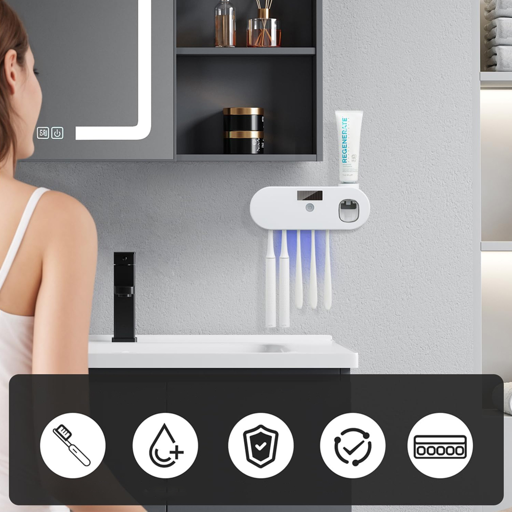💥💥 Тримач для зубної щітки з УФ-стерилізатором, 5 отворів, дозатор для зубної пасти без свердління💥💥