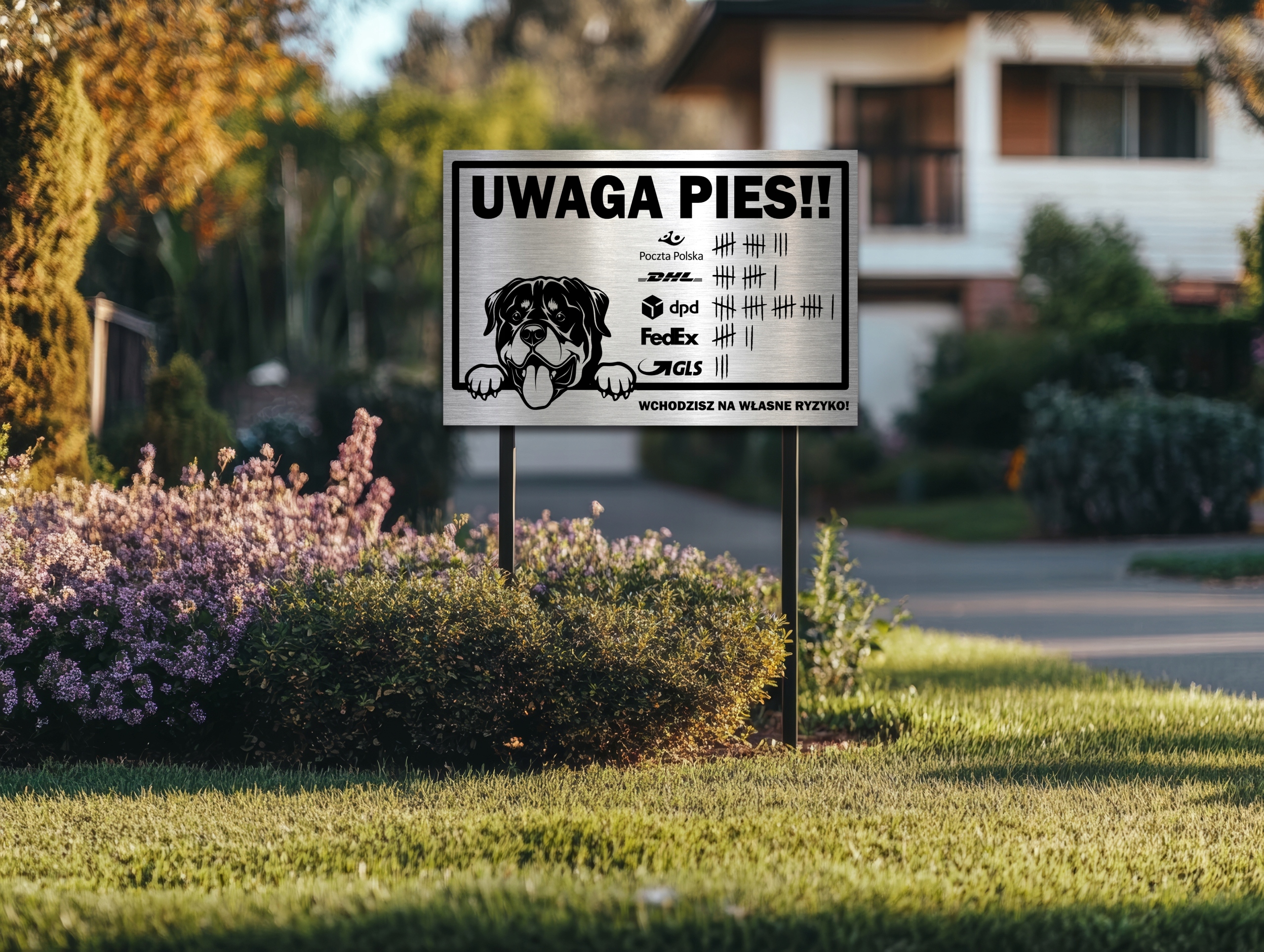 Увага столу Тут собака охороняє нержавіючий нержавіючий друк УФ -принт