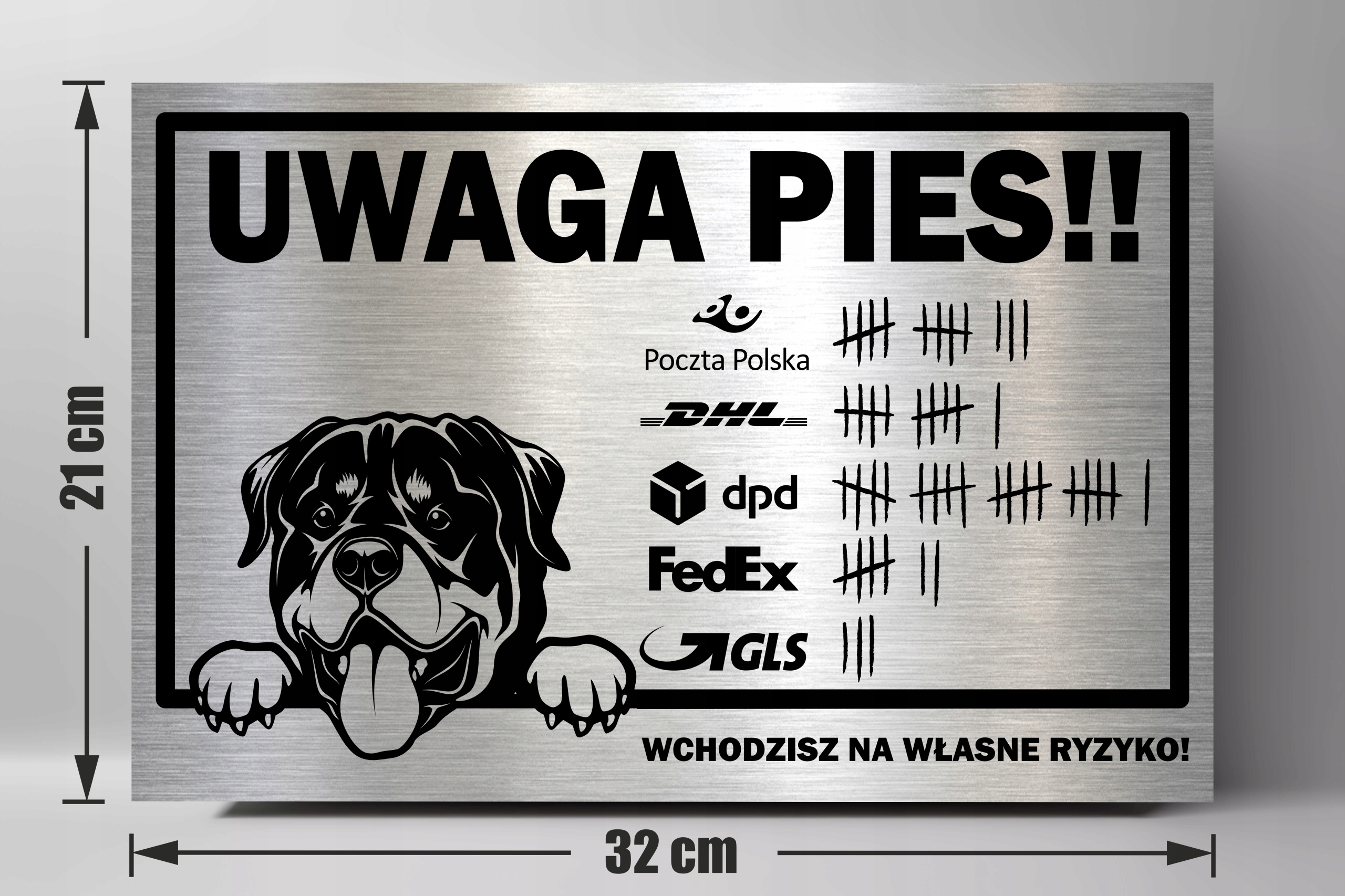 Таблиця "Увага собака ротвейлер" 32 х 21 см. Виготовлений з матового Dibond, надрукованого методом УФ. Дуже довговічний і елегантний.