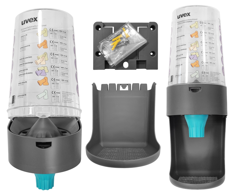 uVex One 2 Клацніть 2112.000 Вставити дозатор . Простий у використанні, твердий дозатор, встановлений на стіні. Легка установка, механізм контролю з добре -чітким "одним 2 клацанням" забезпечує лише необхідну кількість вилків. Диспензатор має можливість постачати великі виробничі площі, має до 600 одноразових вух. Корисно в місцях та галузях, де є ризик пошкодження слуху або необхідність захисту слухань для працівників чи клієнтів. Колективні дозатори повинні розміщуватись у визначених областях, які забезпечують легкий доступ до пробки. колір: сірий/ прозорий. Вага: 1,1 кг. Розміри: Висота: 475 мм/ ширина: 165 мм/ глибина: 190 мм. Матеріал: PP (поліпропілен). Кріплення: для настінних гвинтів. Обладнання: Unswood . Будівництво: дозатор для кріплення настін, три основні деталі: настінна кріплення, прозора контейнер для вух з храповим колесом та колективним лоток. Застосування: Промисловість переробки - на фабриках, виробничих установах, промислових установах, будівництві - на будівельних майданчиках, особливо там, де машини або інструменти, що генерують великий шум, авіаційна промисловість - в зонах наземних служб в аеропортах, автомобільній промисловості - виробничі заводи, ремонтні майстерні та інші місця, пов'язані з автомобільною промисловістю, де шум, що генерується машинами чи інструментами, може бути проблемою.
