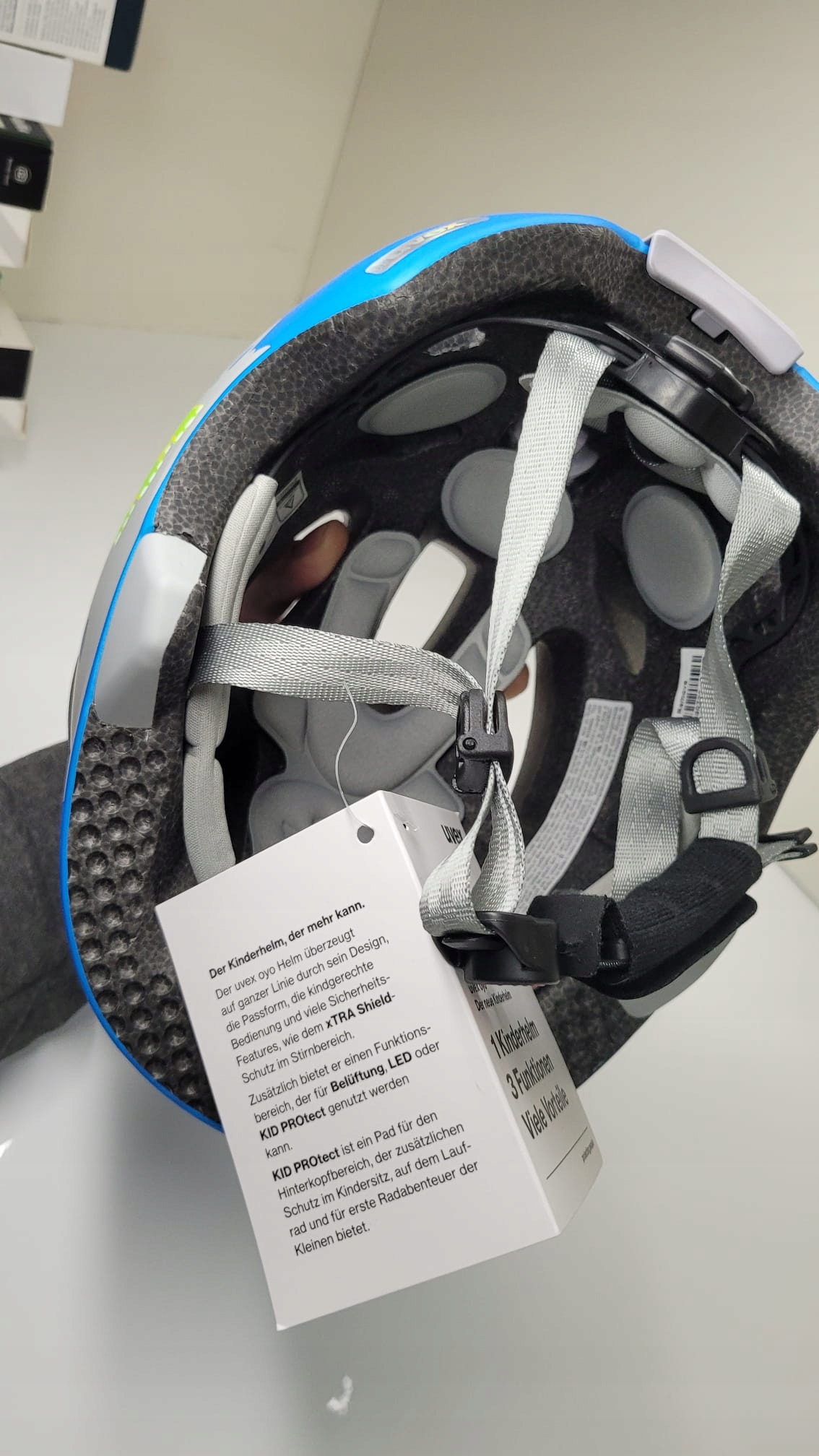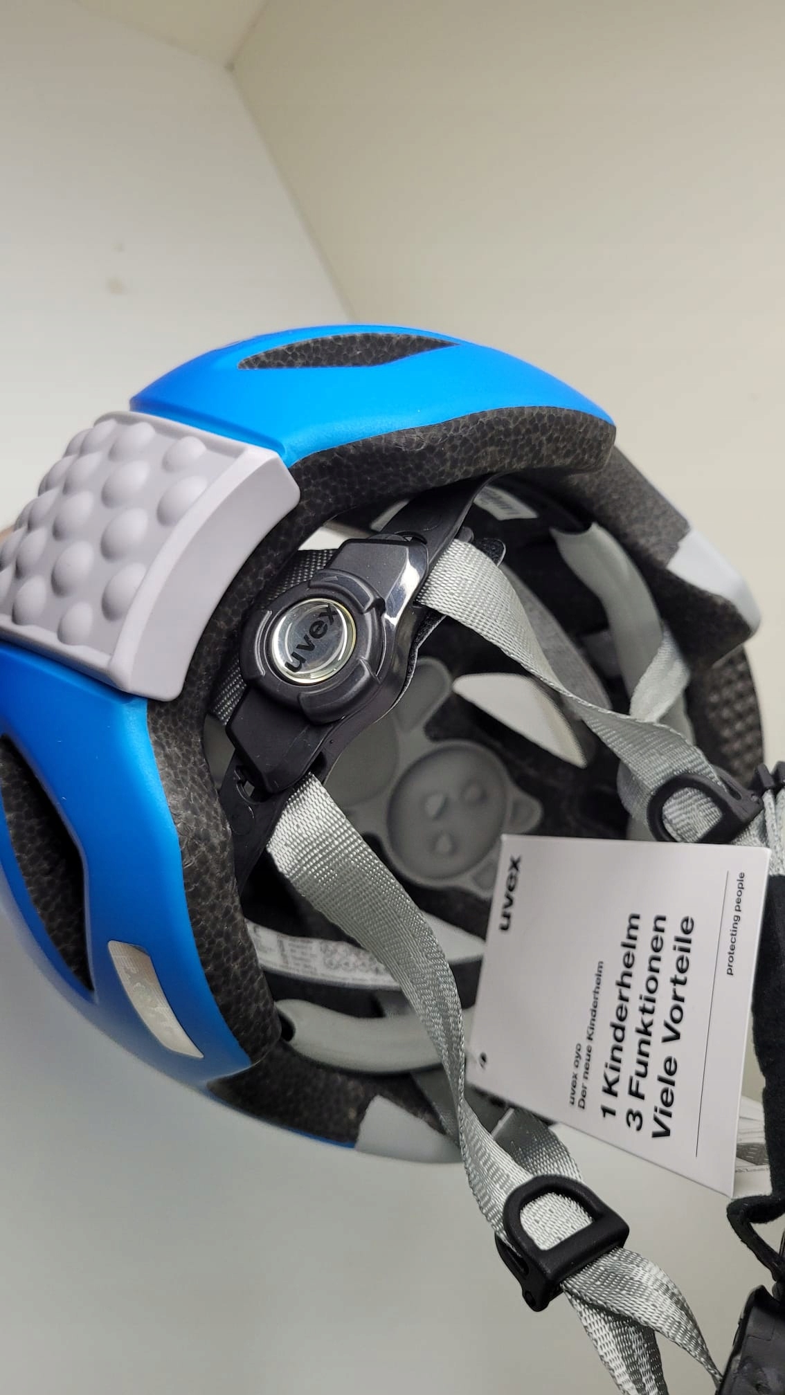 Супер -блюзовий велосипедний шолом для малюків з інноваційною обкладинкою SHIELD UVEX XTRA в передній частині та захистом Kid UVEX. Він оснащений точним клеком Шолом). Inmould