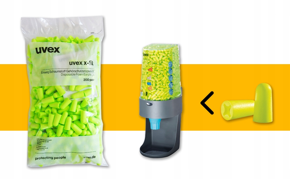 Ергономічні одноразові беруші uvex x-fit характеризуються дуже високою звукоізоляцією, що робить їх придатними для використання в дуже шумних приміщеннях. середовища.