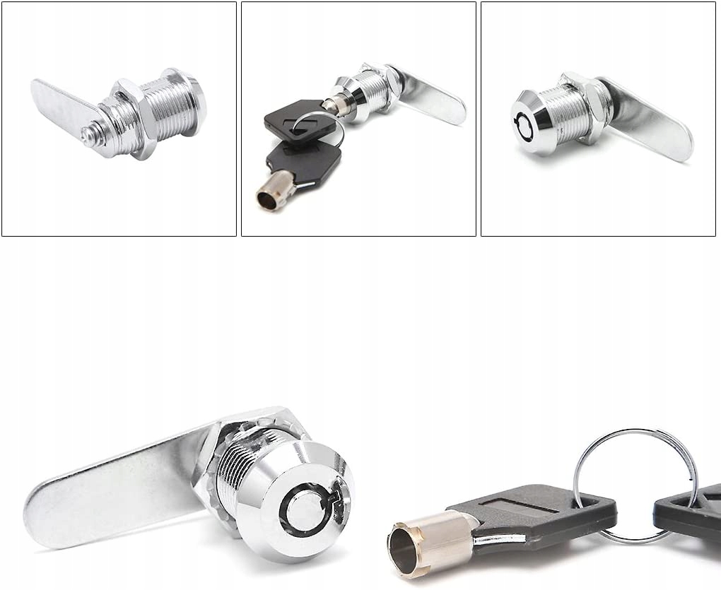 Застосування підходить для шаф, поштової скриньки, шухляди, гардеробу тощо. Високоякісне виконання, високоякісне покриття з цинку та нікелю, довговічне, маленьке та безпечне. Переваги Кулачковий замок із двома ключами Сталева циліндрична гайкова пробка. Кожен замок має різні ключі. Порада, будь ласка, перевірте, чи правильна робоча довжина продається в різних варіантах довжини Вміст упаковки 1 x Cam Lock 2 x ключі 1 x запобіжник Набір включає 1 x замок 2 x ручка для ключа із пластиковою 1 х пластиною безпеки