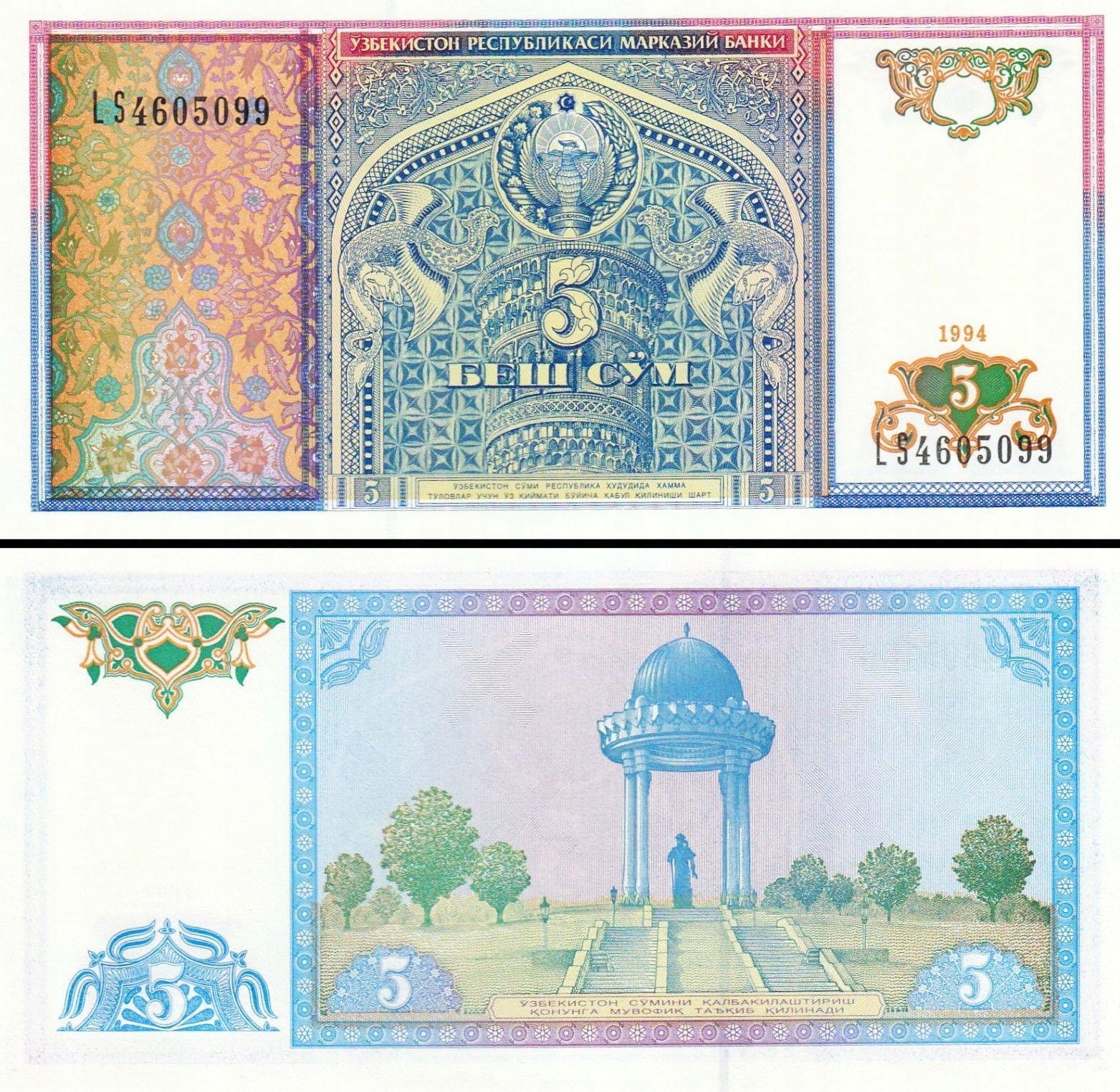 УЗБЕКИСТАН - 5 СОМ - 1994 - P 75 - UNC + БЕЗКОШТОВНО *NN