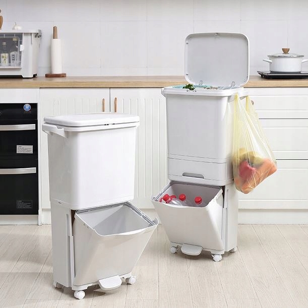 Кошик із кількома відділеннями полегшить розділення сміття. Він не займає зайвого місця в будинку, а завдяки коліщаткам ми можемо легко перемістити його в потрібне місце.