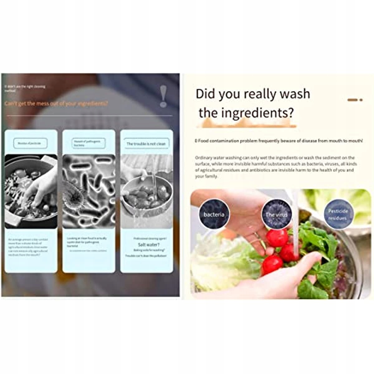 【Широке використання】 Їжте здорово та заощаджуйте час завдяки цій кошику для спорожнення для очищення фруктів та овочів. Вартість відкриття виробляється іонами OH, які видаляють усі залишки та бруд з їжі, , які ви споживаєте щодня (фрукти, овочі, м'ясо, риба та креветки, посуд).