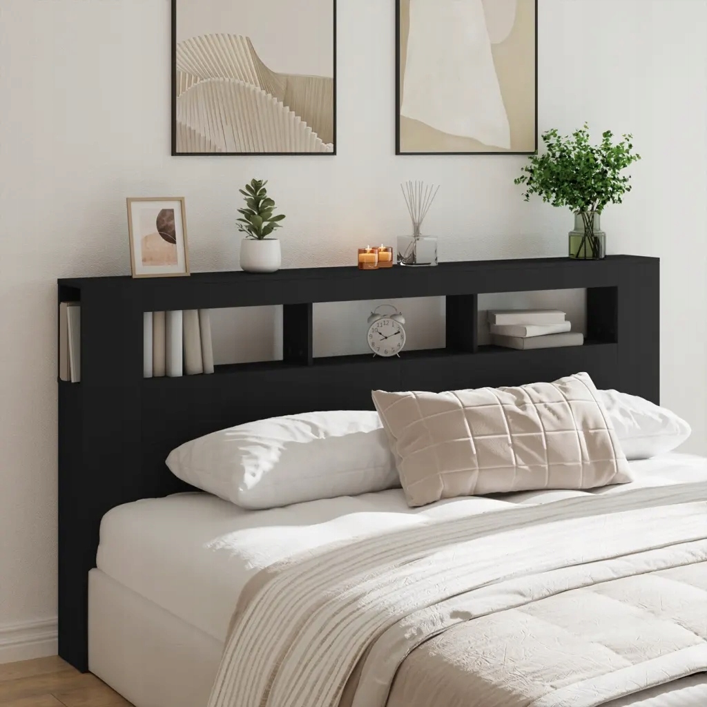 Узголів'я ліжка зі світлодіодом, чорний, 200х18,5х103,5 см
