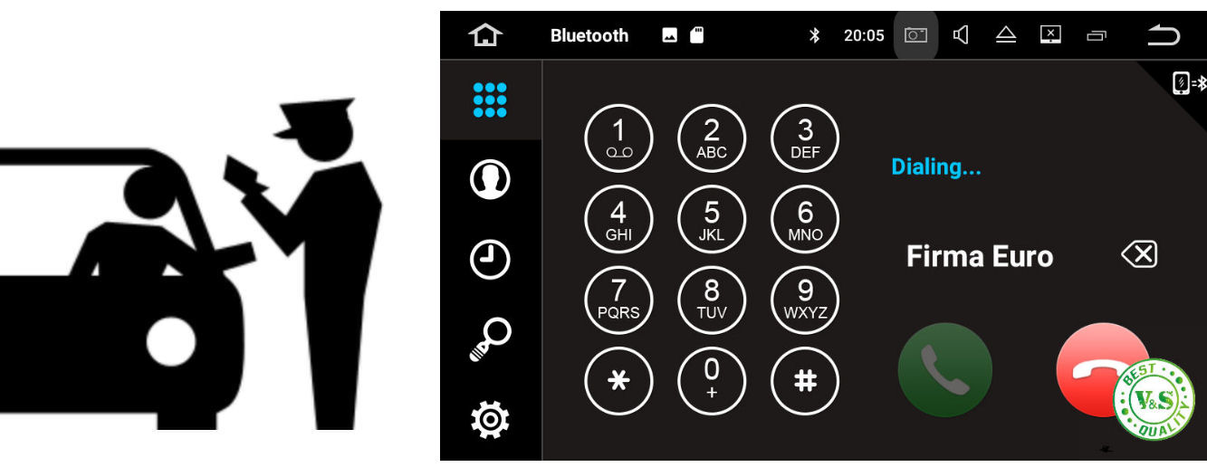 Радіо V&S має висококласний гучномовець, після з'єднання його з нашим телефоном, оснащеним модулем bluetooth, ми можемо говорити скільки завгодно без будь-яких перешкод і штрафів. Немає ефекту луни, як у дешевих моделей, що заважає нормальному функціонуванню. Мультимедійний комплект має функцію телефонної книги. Останній протокол BT 4.0, HFP/HSP, A2DP, AVRCP.