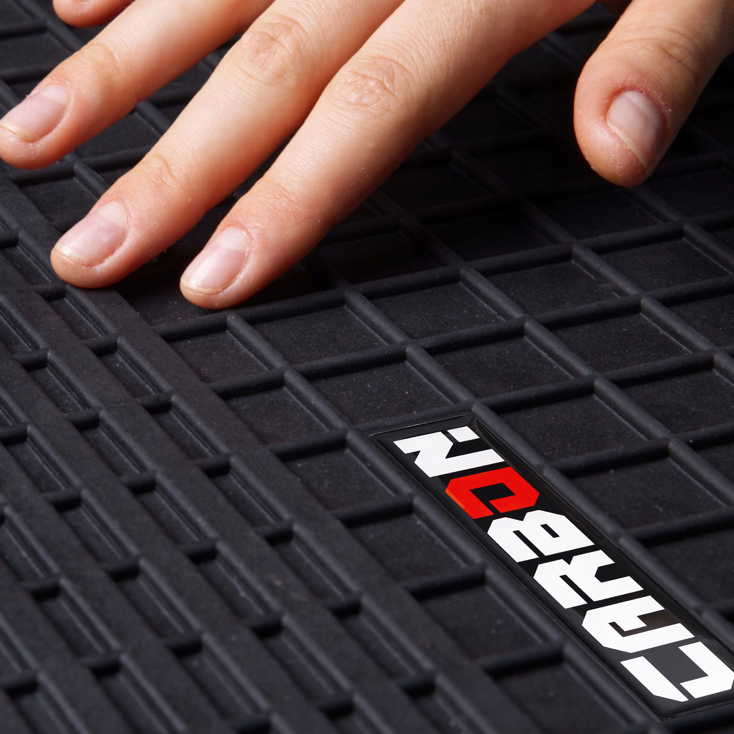 Гумові килимки для передньої та задньої частини автомобіля з елегантною емблемою CARBON на килимку для водія.
