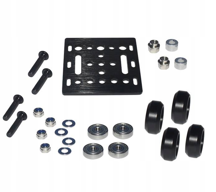 Монтажна пластина V-SLOT з чотирма роликами. Візок з алюмінієвого профілю 2020 можна використовувати для створення 3D-принтерів, фрезерних верстатів, верстатів з ЧПУ або навіть слайдера камери. Пластина має два ексцентрикові гвинти, які дозволяють регулювати тиск роликів на профіль.