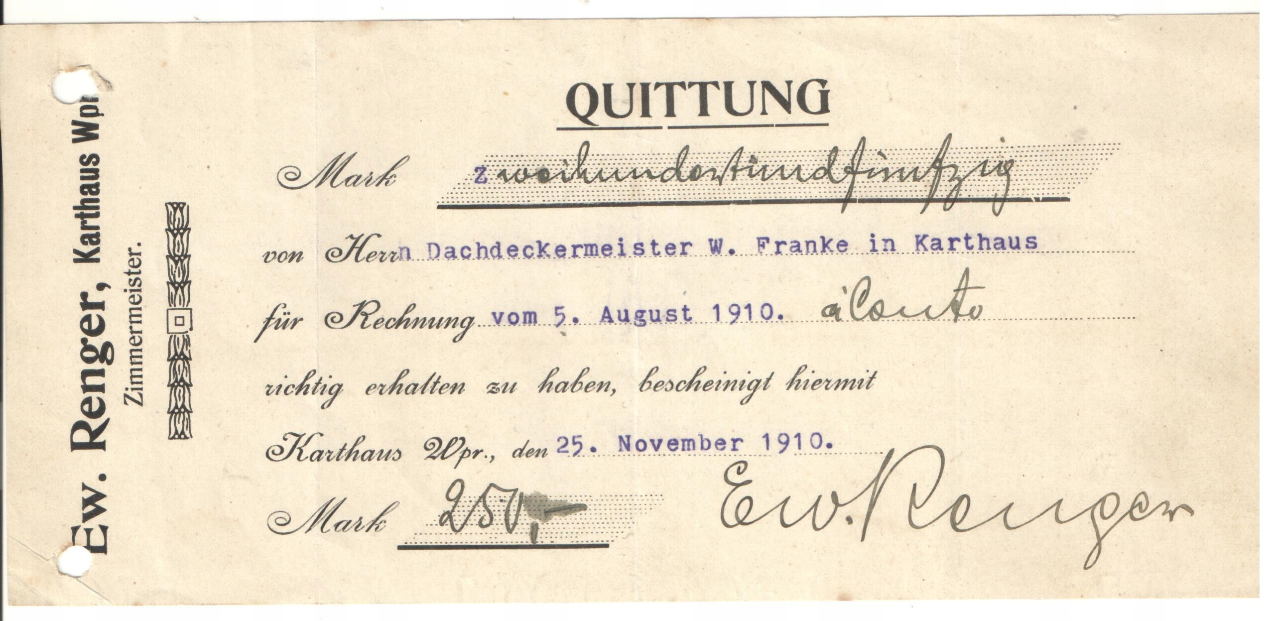 Єв.Ренгер - Картузи - Померанія - 1910