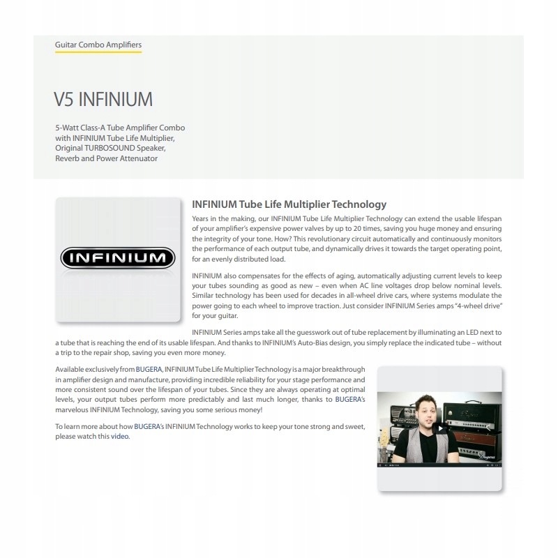 Bugera V5 INFINIUM – ламповий гітарний комбо класу А з технологією INFINIUM. Reverb, колонка TURBOSOUND 8″.