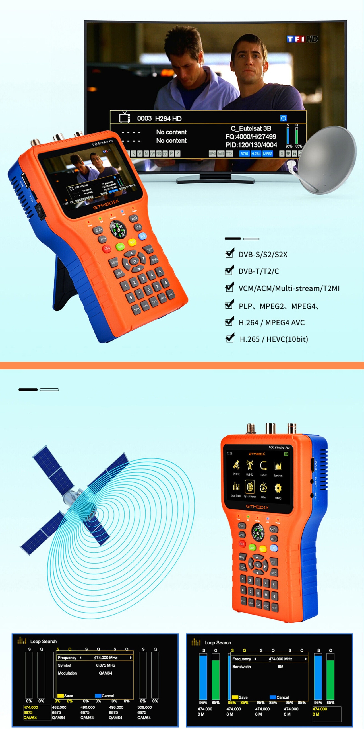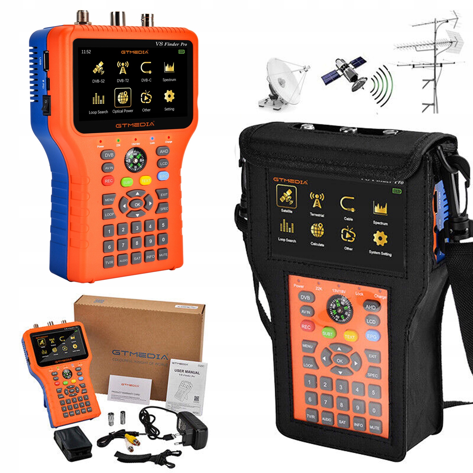 📡 gtmedia v8 finder pro to dvb-s2x/s2/s/s/t2/t/c/atsc-c та mpeg-2/4 h.264/h Розміри, низька вага, інтуїтивний інтерфейс користувача та довгий акумулятор.