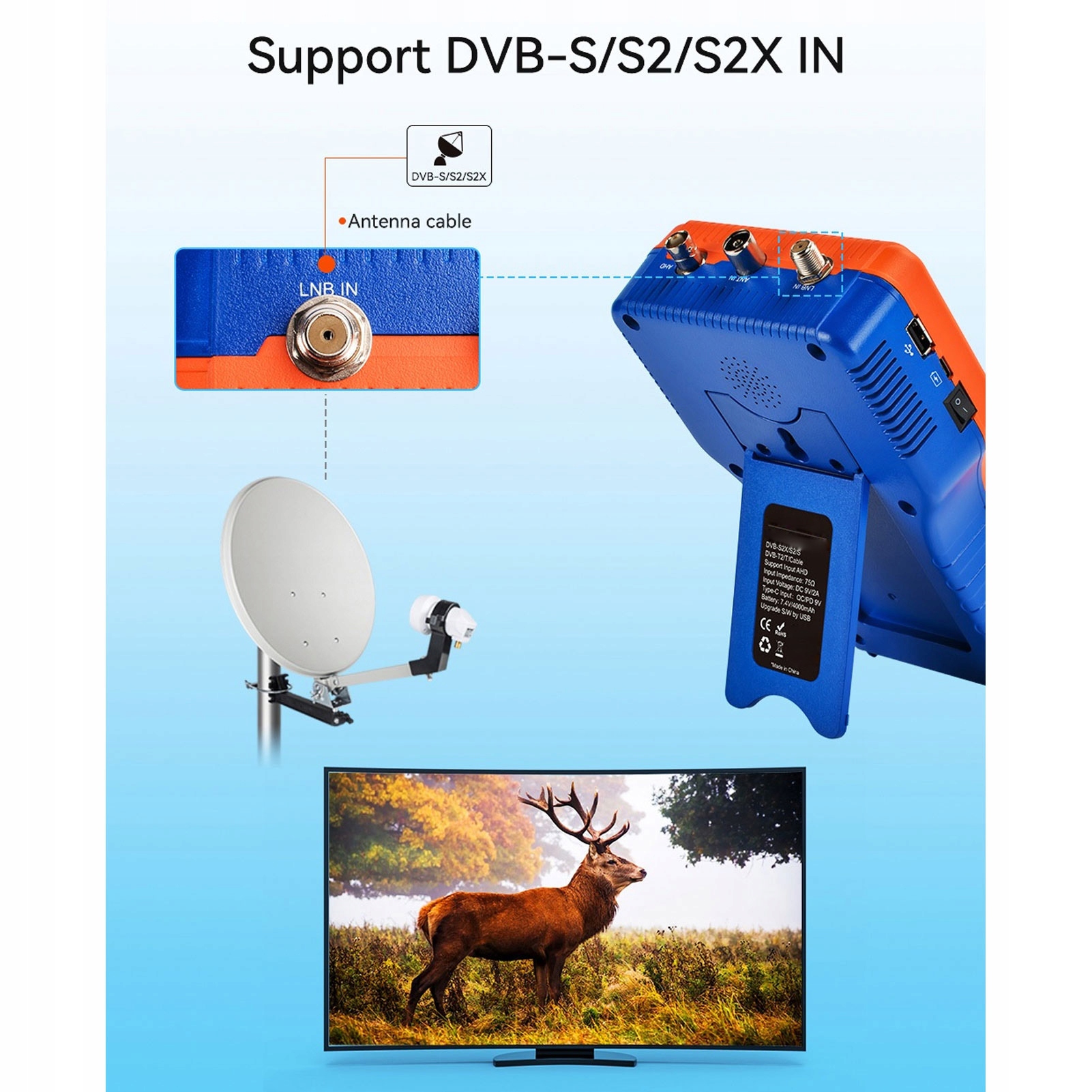 - Стандарт: DVB - S2X/S2/S/T2/T2/T/C/ATSC - C. LCD