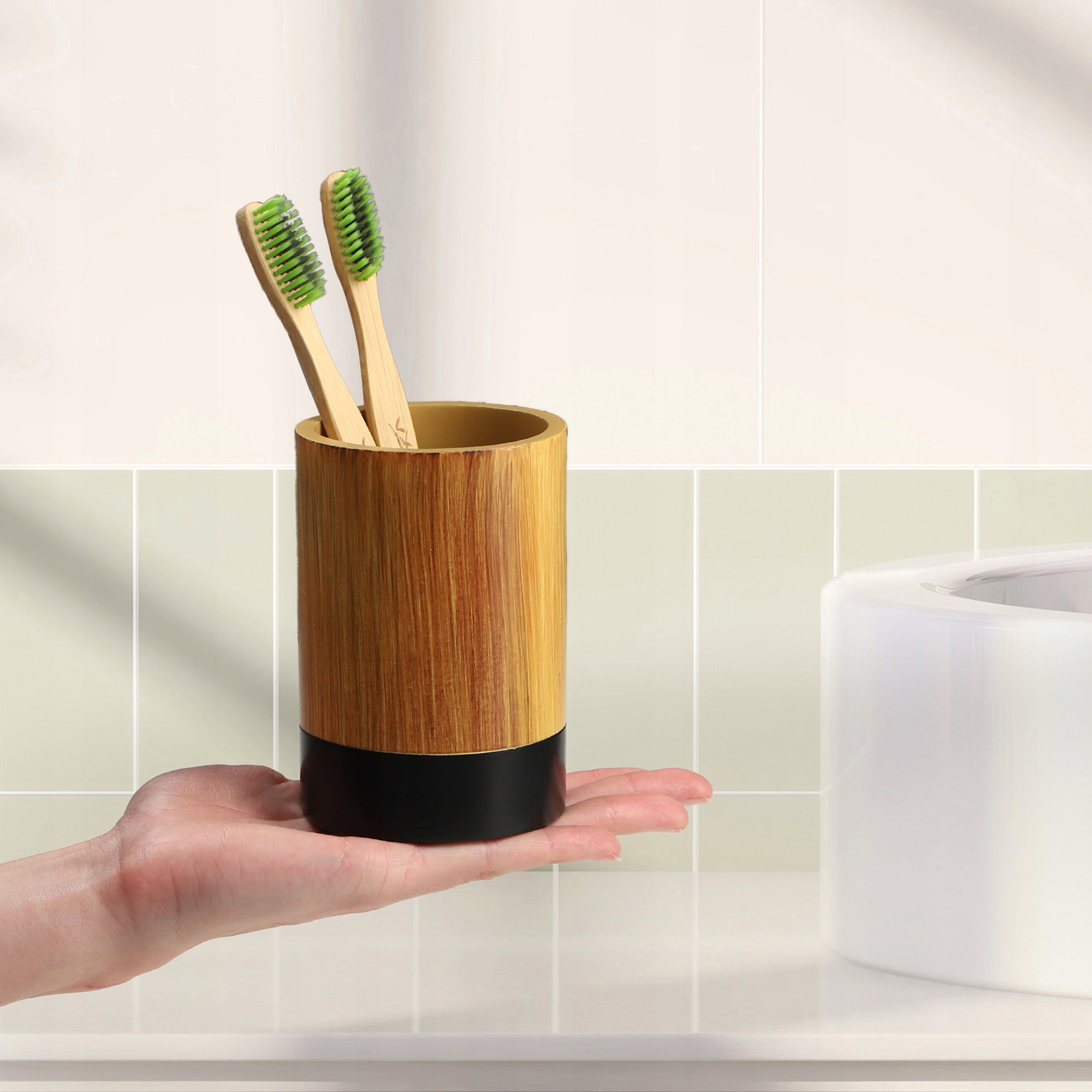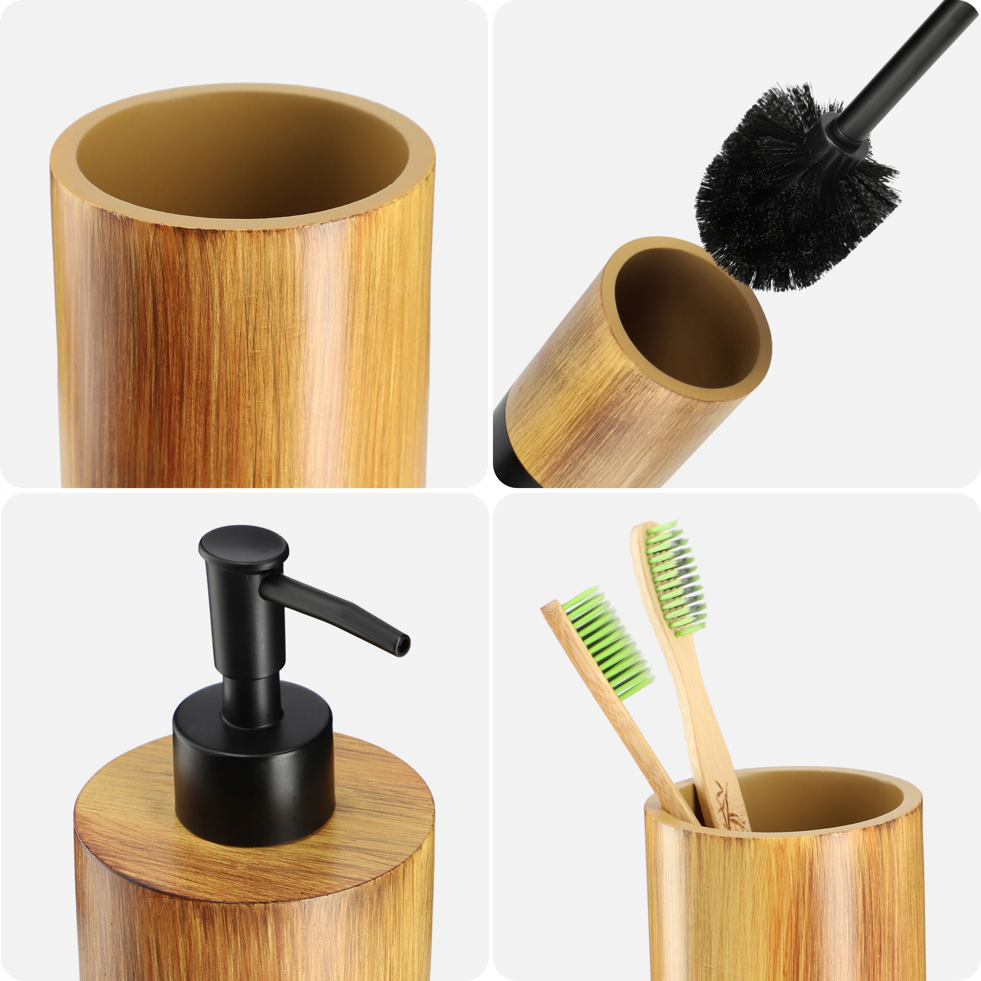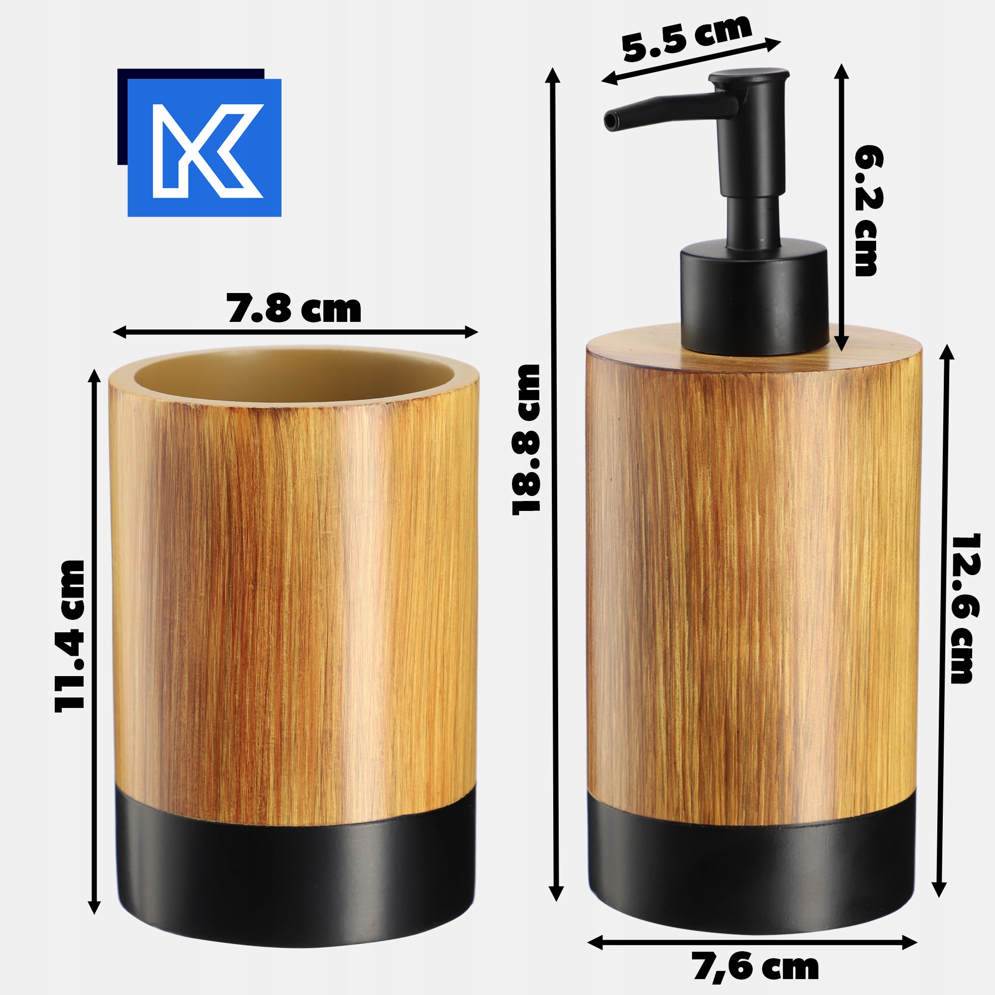 WC -щітка + дозатор + кухоль з дерев’яним малюнком - додайте елегантність вашої ванної кімнати
