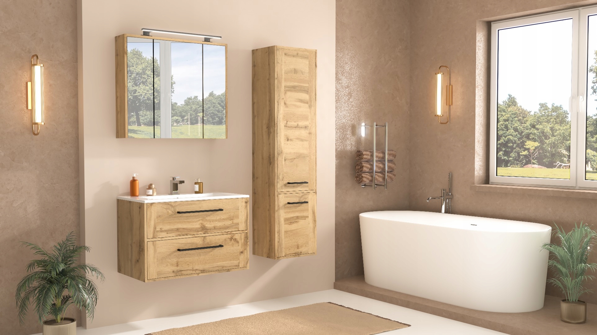 Bathroom set 80cm cabinet with a sink oak wotan vivien h2>