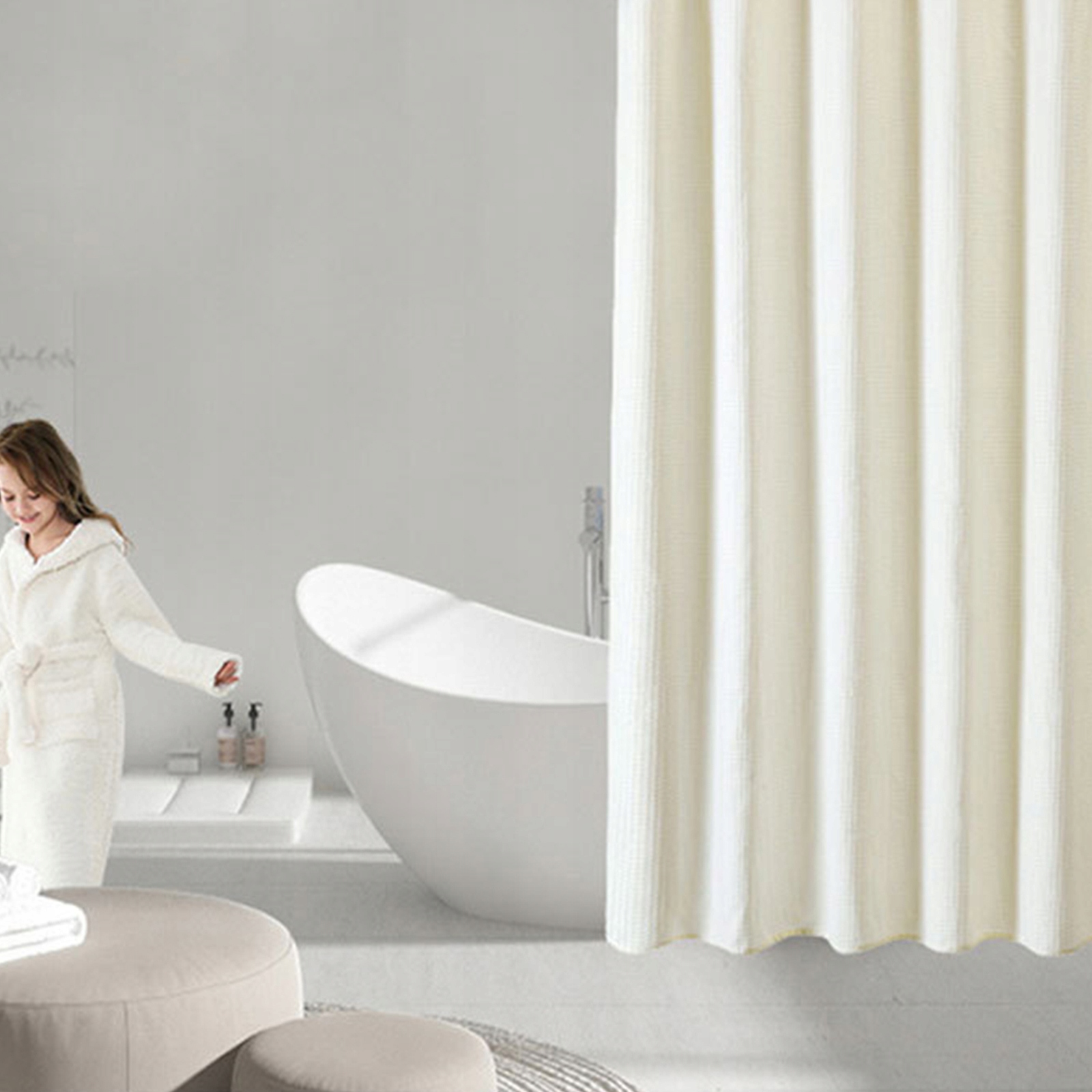 3. Велика вага «бавовна» тканинна завіса для душу: виготовлена з ретельно відібраної та випробуваної високостійкої поліефірної тканини, з домішкою, як бавовна. Шаблони вафельного переплетення додають елегантному акценту вашій ванній кімнаті.
