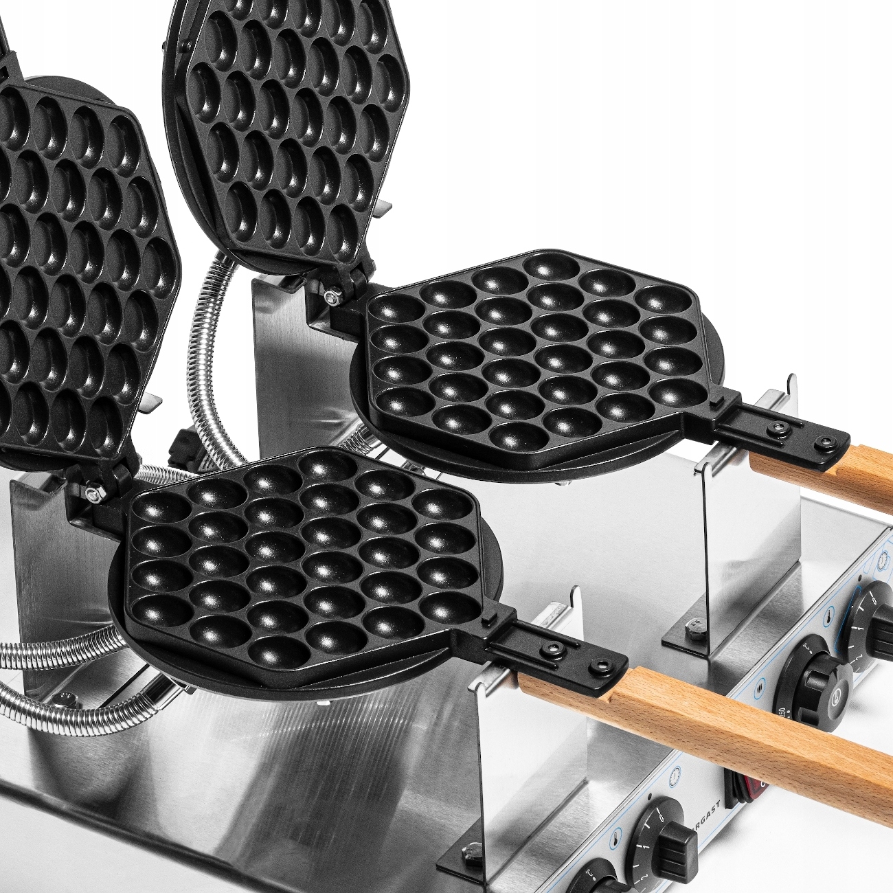 Електровафельниця Forgast, модель FG09722 - це професійний прилад, призначений для інтенсивного використання в закладах громадського харчування. Ідеально підходить для приготування бульбашкових вафель, він пропонує можливість випікати 2x1 шт. Корпус з нержавіючої сталі та алюмінієві пластини з тефлоновим покриттям забезпечують довговічність та легке очищення. Завдяки таймеру та широкому температурному діапазону від 50-250 градусів С пристрій дозволяє точно налаштовувати параметри випікання під тип тіста та вподобання клієнта.