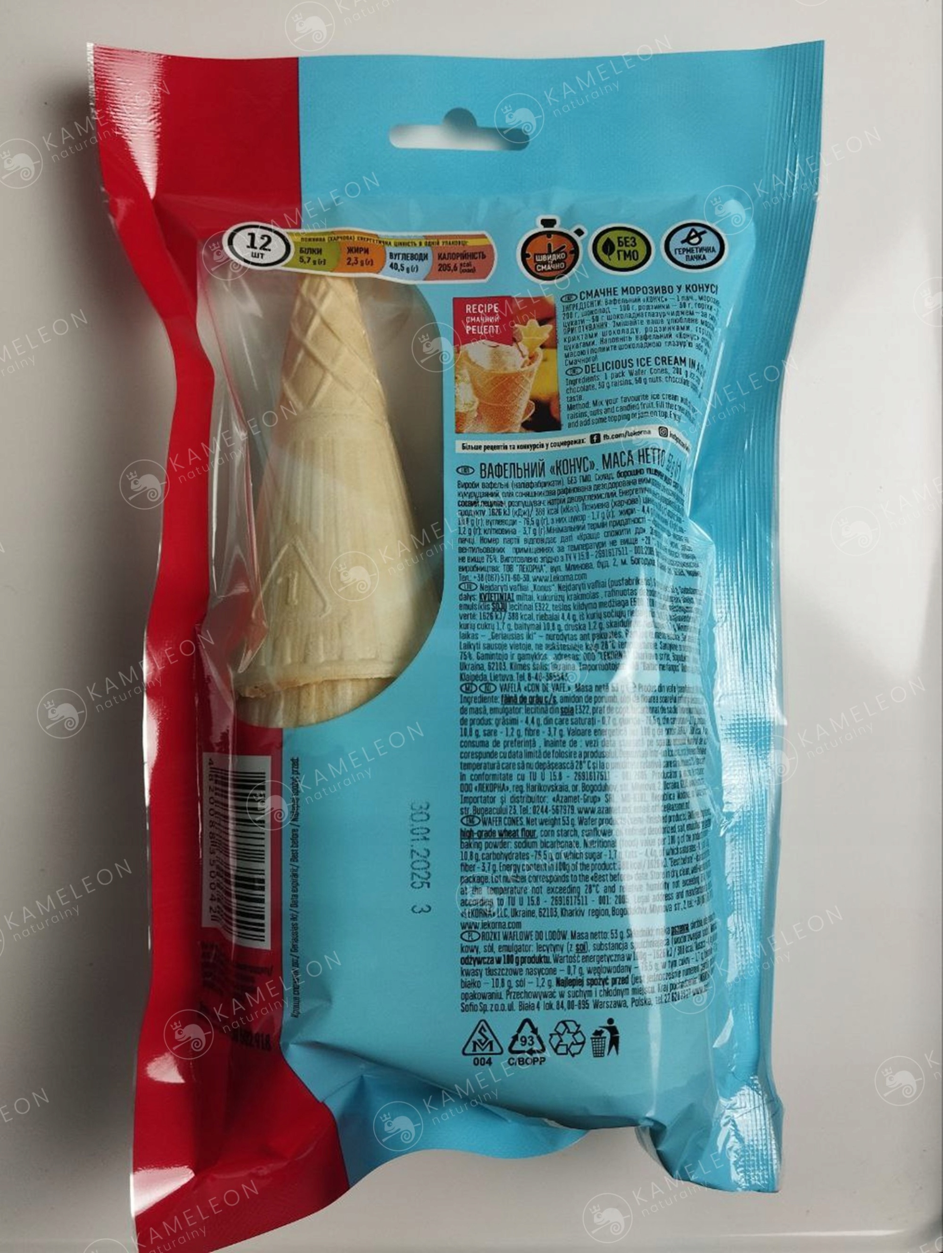 ВАФЛІ МОРОЗИВО ВАФЛІ ДЛЯ МОРОЗИВА хрусткі та легкі ВАФЕЛЬНІ РІЖКИ 12шт 53Г