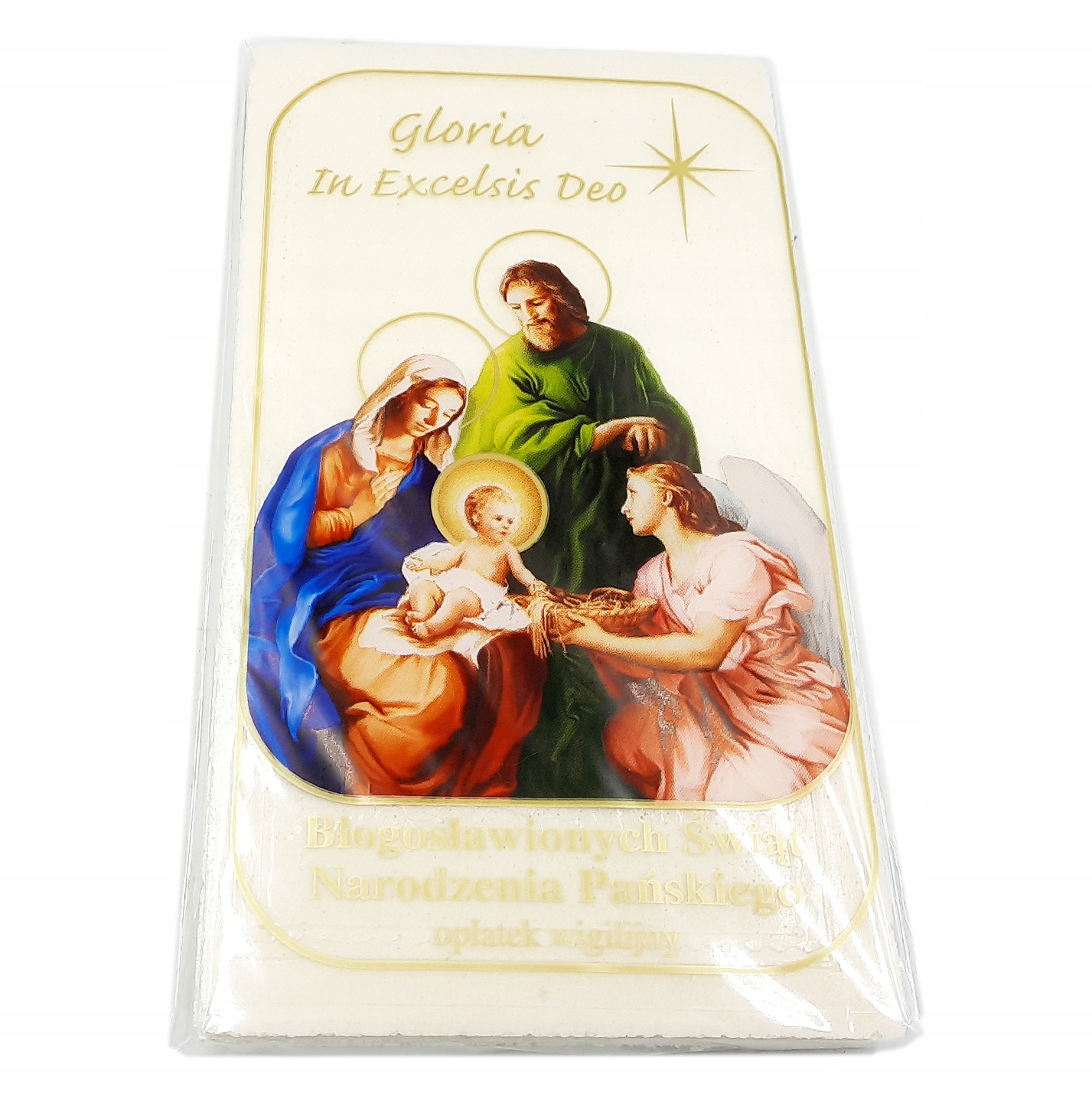 До 100 великих святвечірніх вафель розділених на 10 упаковок по 10 штук.