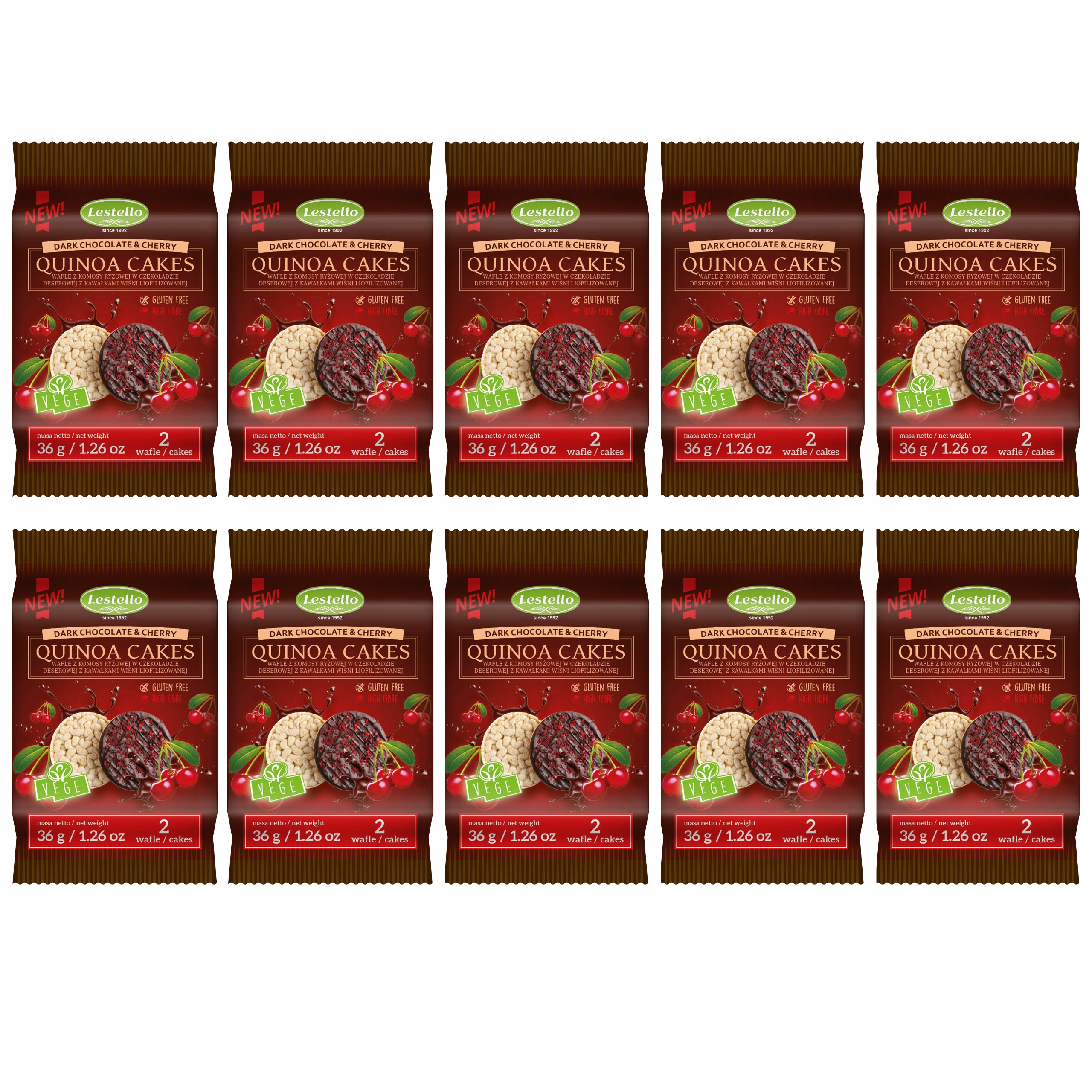 ВАФЛІ З РИСОВОГО КОМОСУ В ШОКОЛАДІ З ВИШНЕЮ 10ШТ х 36Г VEGE LESTELLO