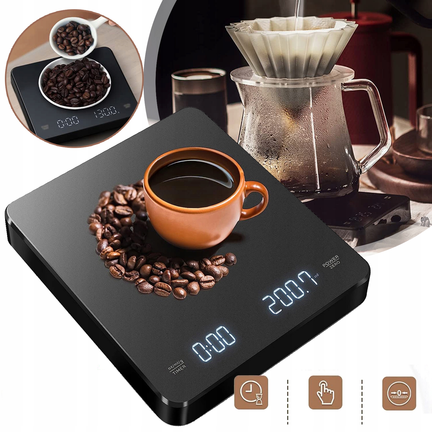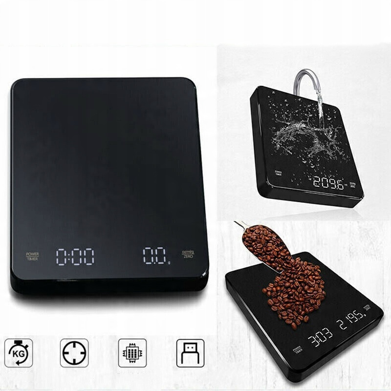 Вага кави оснащений точними датчиками та технологією вимірювання рідини, щоб ретельно вимірювати вагу від 1 г до 3 кг. Він ідеально підходить для вимірювання обсягу рідини, приготування їжі, приготування їжі вдома, випічки та змішування спецій. Ця вага кави ідеально підходить для заварювання кави різними способами.