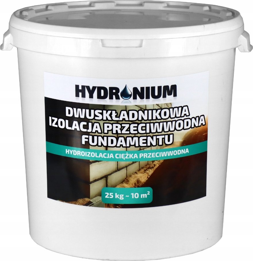 Двокомпонентна гідроізоляція фундаменту Hydronium є новим стандартом захисту фундаменту. Це товстошарова двокомпонентна ізоляційна маса з полістирольним наповнювачем, також відома як маса КМБ (ПМКМ). Завдяки унікальній формулі, що містить кульки пінополістиролу, ця маса забезпечує неперевершений захист від води. Пінополістирольні кульки полегшують нанесення, створюючи однорідний і рівномірний шар по всій поверхні основи, що запобігає утворенню місць зі слабкішою ізоляцією.