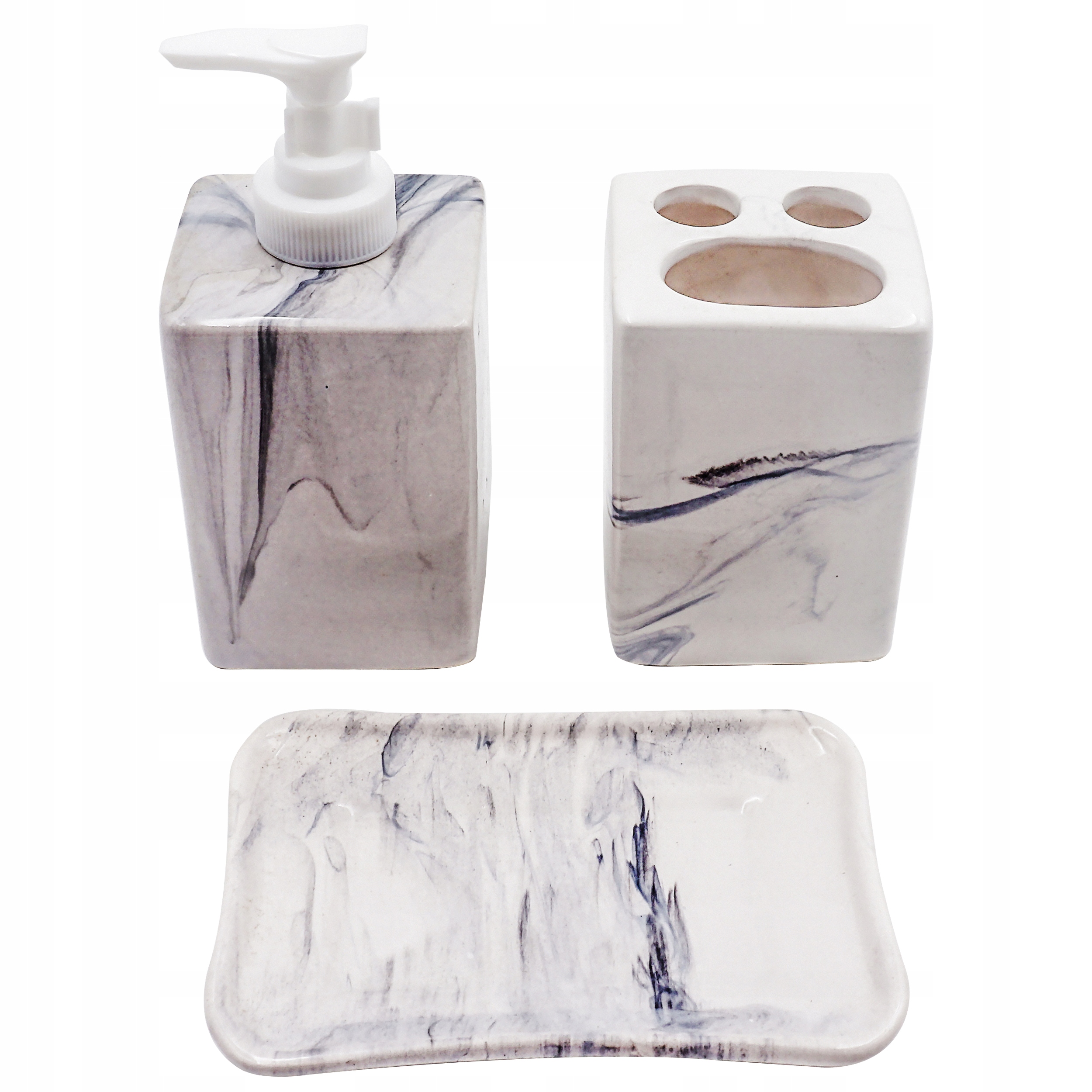 Керамічний дозатор для промивання рідкого або рідкого мила, традиційного мила та контейнера для ванної кімнати. Кожен набір по -різному розповсюджується "Мінеральний хрест", що робить його унікальним. (наприклад, для зубних щіток)