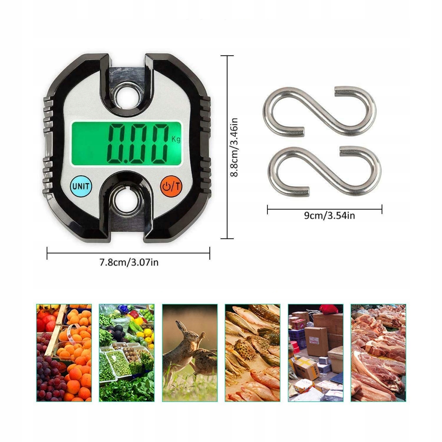 Корпус виготовлено з високоміцного матеріалу ABS, а дужка виготовлена з високоякісної нержавіючої сталі. Ваги пропонують функцію тарування, блокування/розблокування даних (L-ON/L-OF) і пам'ять останньої вибраної одиниці (KG/LB/JIN).