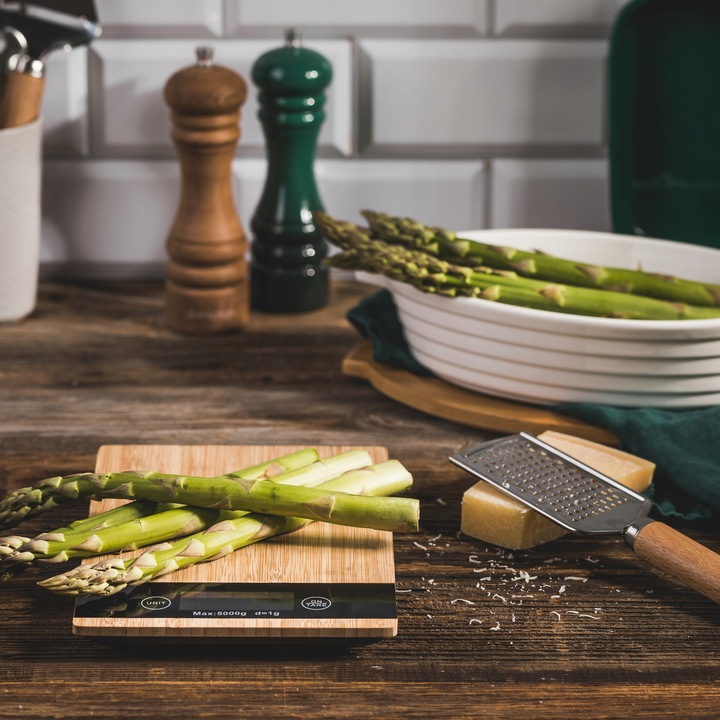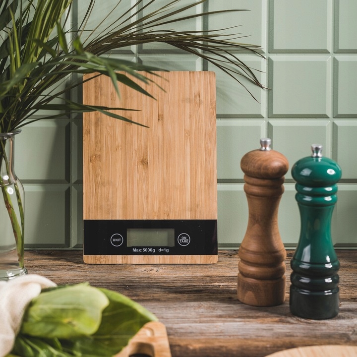 Поверхня з бамбука, яку легко чистити, дозволяє легко підтримувати накип у чистоті - просто протріть його вологою тканиною. Наші ваги є ідеальним рішенням для людей, які цінують естетику, функціональність та екологію, і підходять як для кулінарів-любителів, так і для професійних кухарів. Виберіть бамбукові електронні кухонні ваги LCD і внесіть гармонію та порядок у своє приготування їжі.