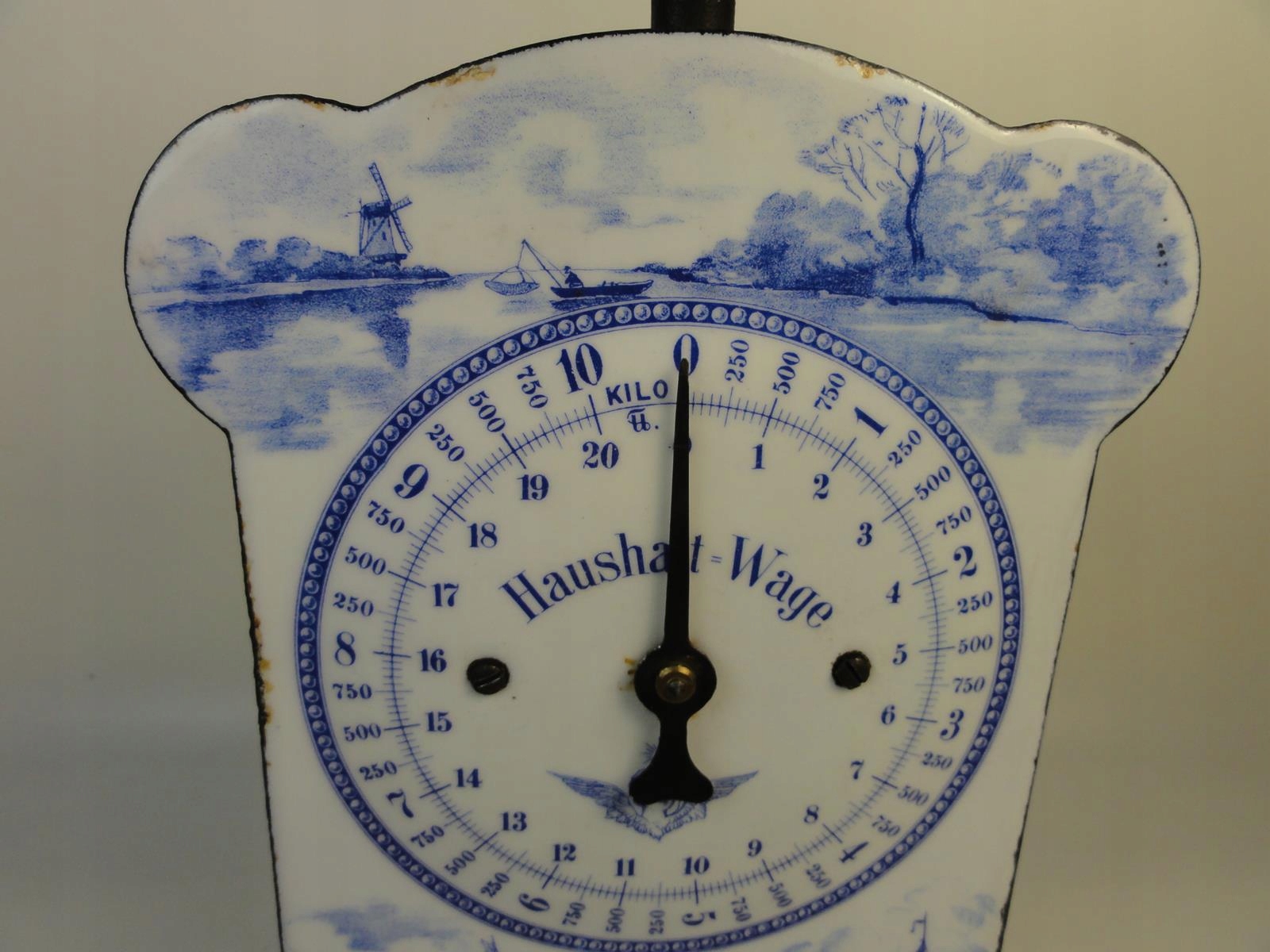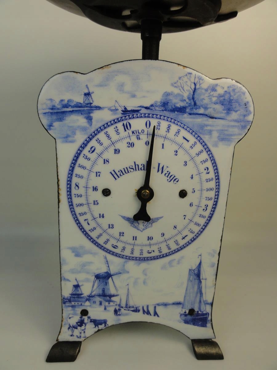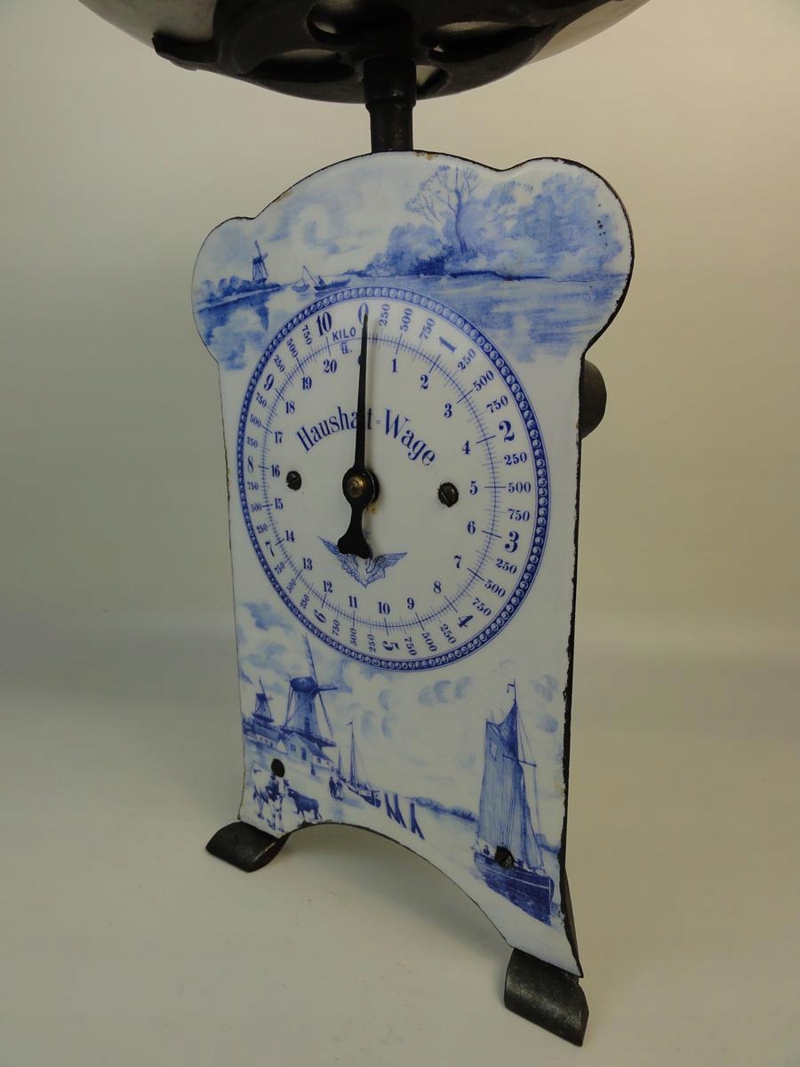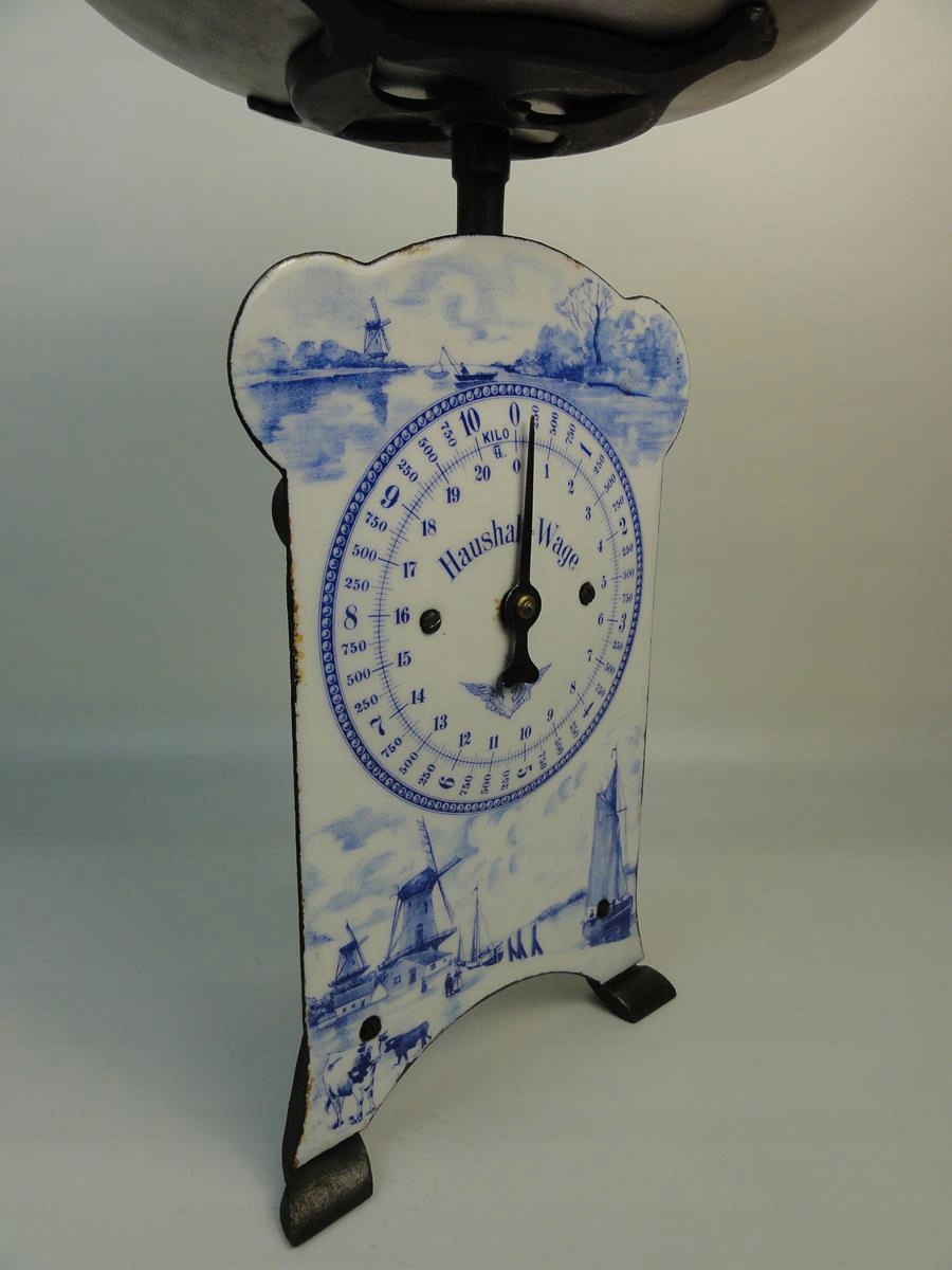 * 10 кг колекційний, лиття в стилі модерн чавунні ваги з емальованим фасадом, розписані голландськими мотивами,