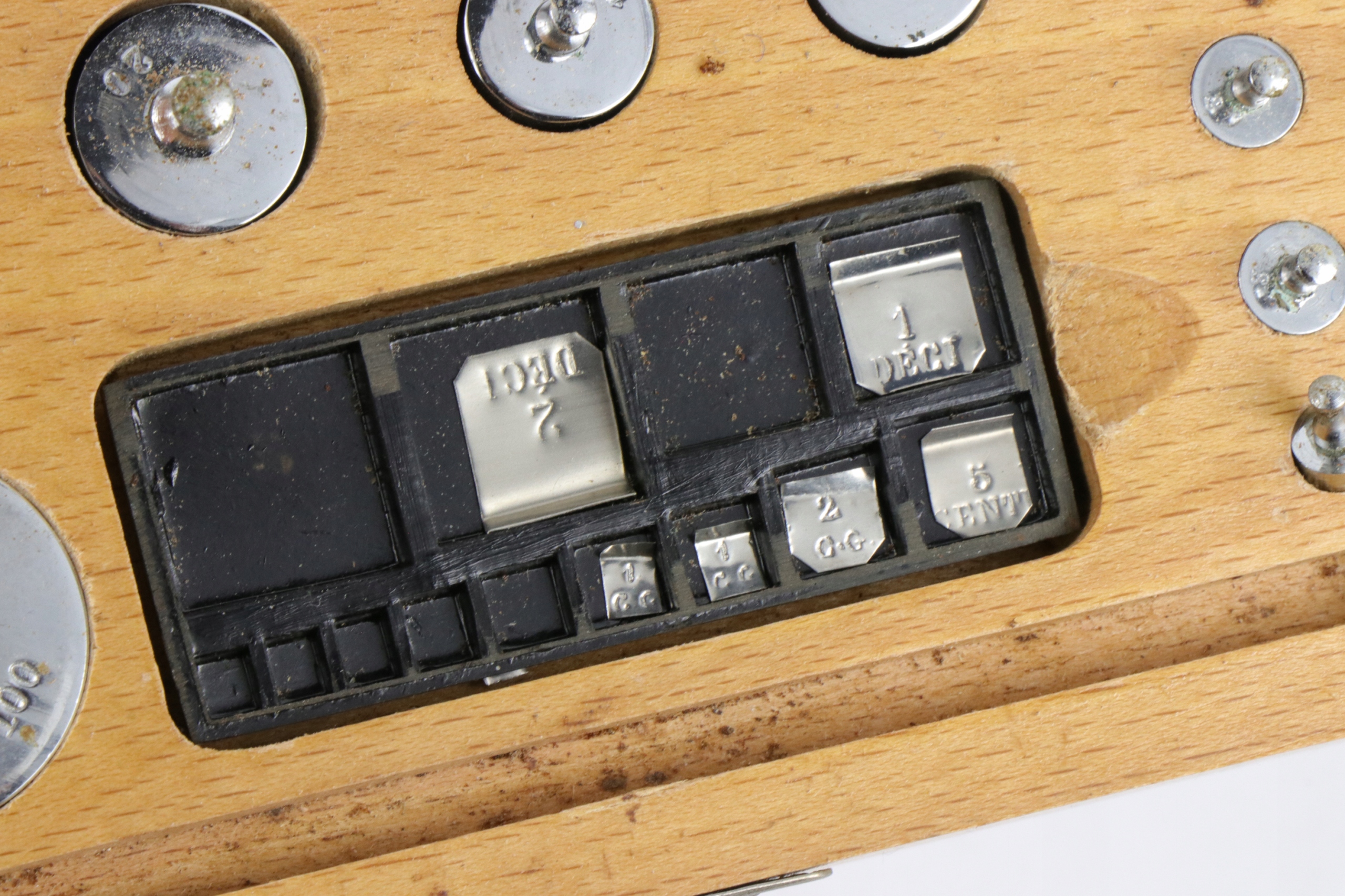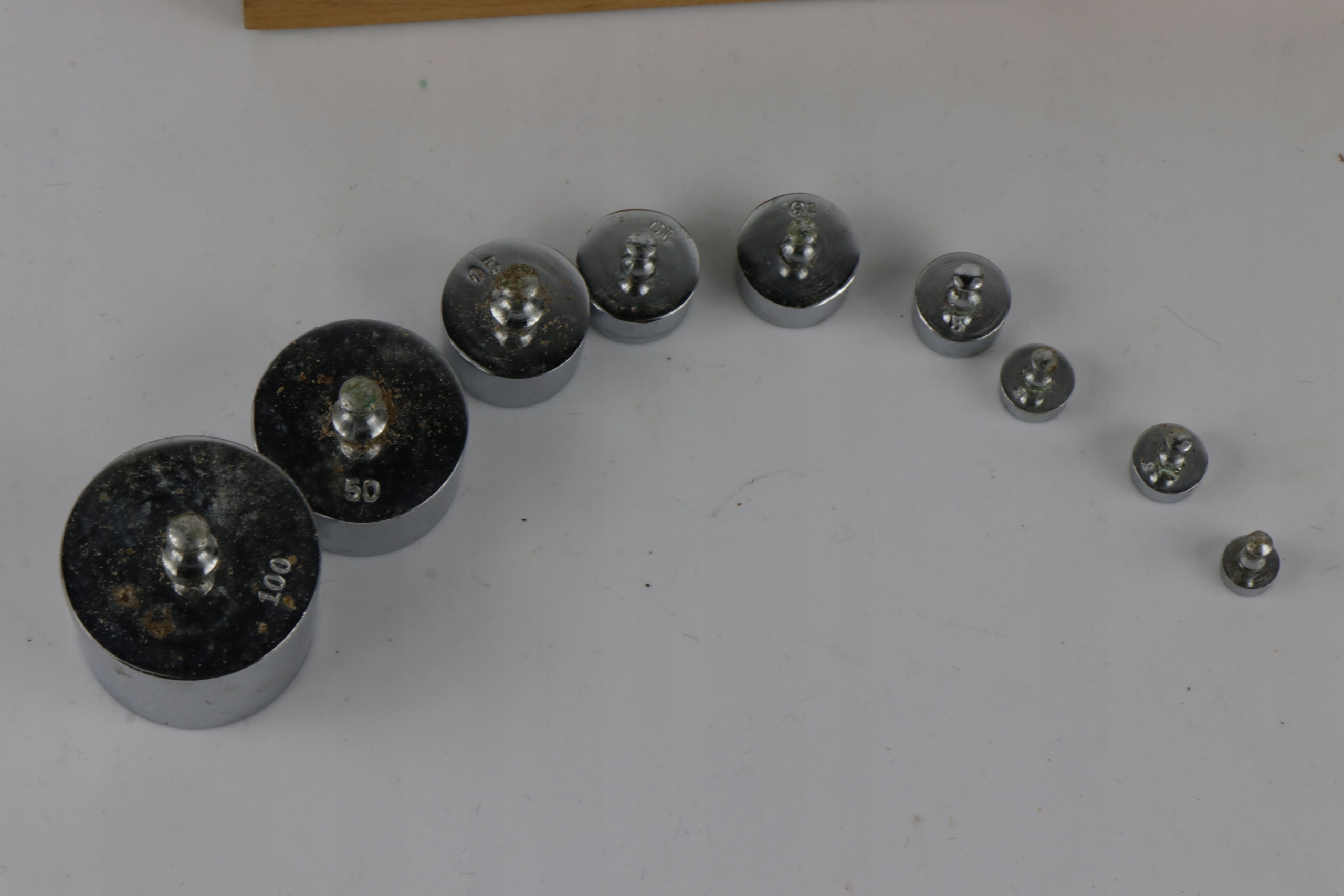 Ваги лабораторні в дерев'яному футлярі з маркувальними кліщами Inox. Похибка ваги 1/2 Mg Precision або 1/2 Mg Correction a la poussee de l'air Nr. 2467